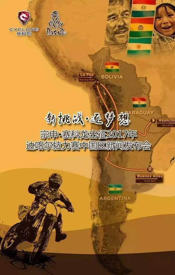 達(dá)喀爾拉力賽,被稱為勇敢者的游戲、世界上最艱苦的拉力賽。作為最嚴(yán)酷和最富有冒險精神的賽車運動,為全世界所為知曉,受到全球五億人以上的熱切關(guān)注。巴黎-達(dá)喀爾的正式法語名稱為LeDakar,每年的賽會都以贊助商或地區(qū)名稱冠名。2009年,由于非洲大陸受到了恐怖主義的威脅,出于安全考慮,賽事組委會決定把比賽轉(zhuǎn)移到南美洲進(jìn)行。而此次參加達(dá)喀爾拉力賽也讓宗申成為金城之后第二家參加達(dá)喀爾拉力賽的中國廠商。