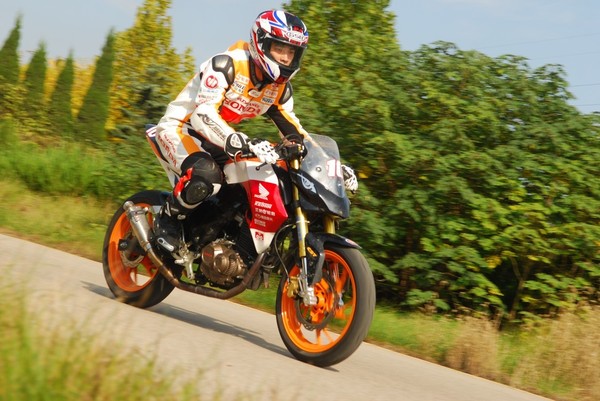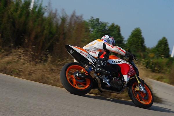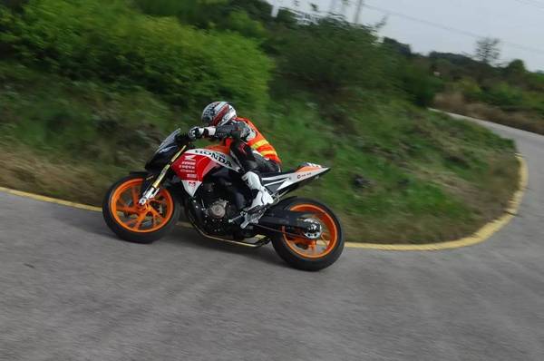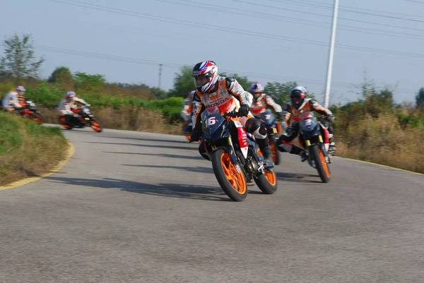 午飯后,經(jīng)過簡短的休息,入選決賽的9名車手早早來到賽車前。隨著五羊-本田營銷服務部部長助理潘遠華先生手中的綠旗落下,9輛“暴眼”如脫韁的野馬沖出發(fā)車區(qū),高性能單缸的高頻嘯叫匯成一首奔騰的交響樂響徹賽道,聽得人血脈賁張!