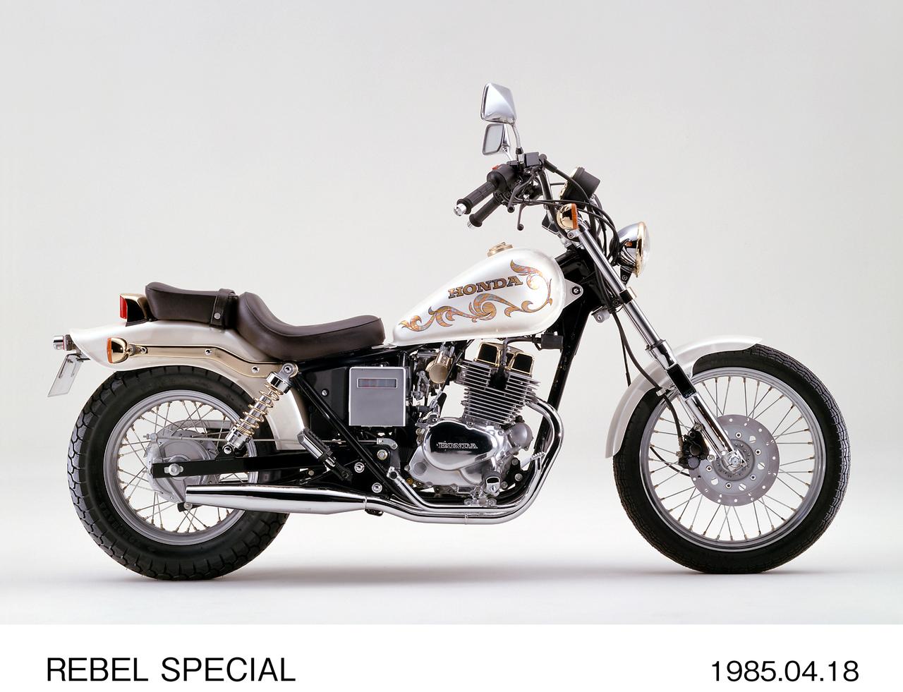 第一代的 CA 250T “ 叛逆者 ” Rebel(MC13)在 1985 年四月首次發(fā)布,搭載一副風(fēng)冷四沖程直列兩汽缸、OHC 每汽缸兩汽閥的發(fā)動(dòng)機(jī)(MC06E)。當(dāng)時(shí)主要針對(duì)日本本土市場(chǎng),部分出口到香港等的其他地區(qū)。1996 年二月作最后一次的小改進(jìn),2000 年前后不再列入日本本土市場(chǎng)的官方銷(xiāo)售目錄、但卻開(kāi)始以 CMX 250 Rebel 的名字進(jìn)入美國(guó)市場(chǎng)的官方銷(xiāo)售渠道,一直銷(xiāo)售到現(xiàn)在。對(duì)于有點(diǎn)年紀(jì)的中國(guó)車(chē)友來(lái)說(shuō),第一代的 CA 250T Rebel 幾乎就是太子車(chē)的代名詞,曾幾何時(shí)以 “ 水車(chē) ” 的身份流行于全國(guó)各地,至于國(guó)產(chǎn)的仿制品更是多得數(shù)不勝數(shù)。