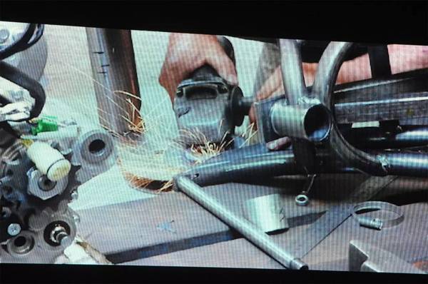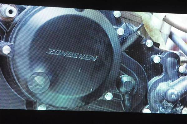 李隊(duì)長(zhǎng)告訴大家:車隊(duì)自去年10月就開始籌備,在產(chǎn)品研發(fā)及隊(duì)員選擇等方面一步步完善至今,現(xiàn)在是萬(wàn)事俱備只待出征。既然是參賽,當(dāng)然要說(shuō)說(shuō)賽車了——大屏幕上出現(xiàn)了賽科龍戰(zhàn)車的研發(fā)過(guò)程,宗申生產(chǎn)的450戰(zhàn)車,搭載宗申自主研發(fā)的NC450單缸DOHC 4氣門發(fā)動(dòng)機(jī),爆發(fā)力強(qiáng) 性能穩(wěn)定,配合適應(yīng)賽事需求的專業(yè)車架和懸掛等部件,其表現(xiàn)值得期待。另外,各位不要咽口水了——這款高性能發(fā)動(dòng)機(jī)會(huì)是宗申民用車中的重要?jiǎng)恿ζ脚_(tái),它即將匹配賽科龍系列的拳頭產(chǎn)品。