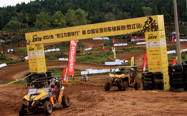 2015"羅江農(nóng)商銀行杯"中國全地形車錦標賽(羅江站)設(shè)置ATV運動車型組、ATV通用車型組和UTV車型組三大類別,凌鷹運動車型組個人賽及隊賽、環(huán)松通用車型組隊賽、公開ATV運動車型組個人賽及隊賽、杰納UTV車型組個人賽、公開UTV車型組個人賽、青少年ATV運動車型組個人賽、新蜂凌鷹女子ATV運動車型組個人賽等七組比賽,采用國家一級全地形車專用賽道,賽場處于四川羅江白馬關(guān)景區(qū)內(nèi),場館及附屬設(shè)施建設(shè)歷時半年,配套設(shè)施非常完備,景色優(yōu)美,賽道間的植被都予以保留。賽道依山而建,因此具有山地賽道的特點。面積100余畝,長度近1260米,落差達30余米,彎道多達20余處,其中水坑長達20余米,最后終點前的接近45度長達60多米的長距離上坡更是令人望而生畏。環(huán)松集團、凌鷹機車和常州杰納作為中國全地形車品牌代表,大力支持本次賽事,為大賽提供了環(huán)松700CC通用型ATV賽車、凌鷹250CC運動型ATV賽車和320CCUTV車型賽車。急速上坡、急轉(zhuǎn)、騰空,賽手精湛的駕車技藝和頑強的競技精神在優(yōu)質(zhì)賽車的保障下,在國內(nèi)獨一無二的綜合性賽場上展現(xiàn)的淋漓盡致,使比賽更加刺激,更加精彩。