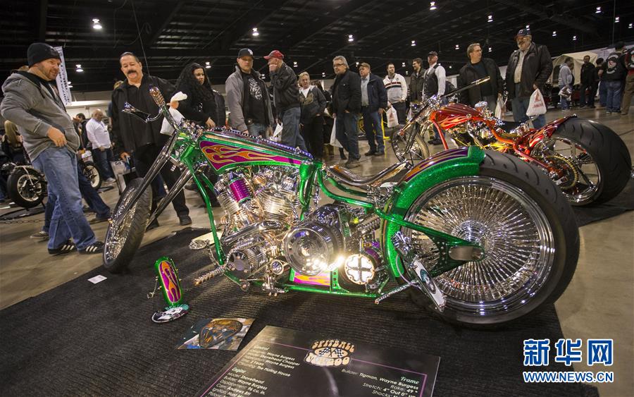 核心提示: 1月7日,在加拿大多倫多,觀眾在北美國(guó)際摩托車展上參觀改裝摩托車。 1月6日至8日,匯集了上千輛摩托車的2017年北美國(guó)際摩托