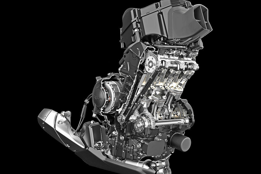 下圖:凱旋 Daytona 675R 所搭載的,最大動力輸出為 94 kw(128 匹)三汽缸發(fā)動機(資料圖片)