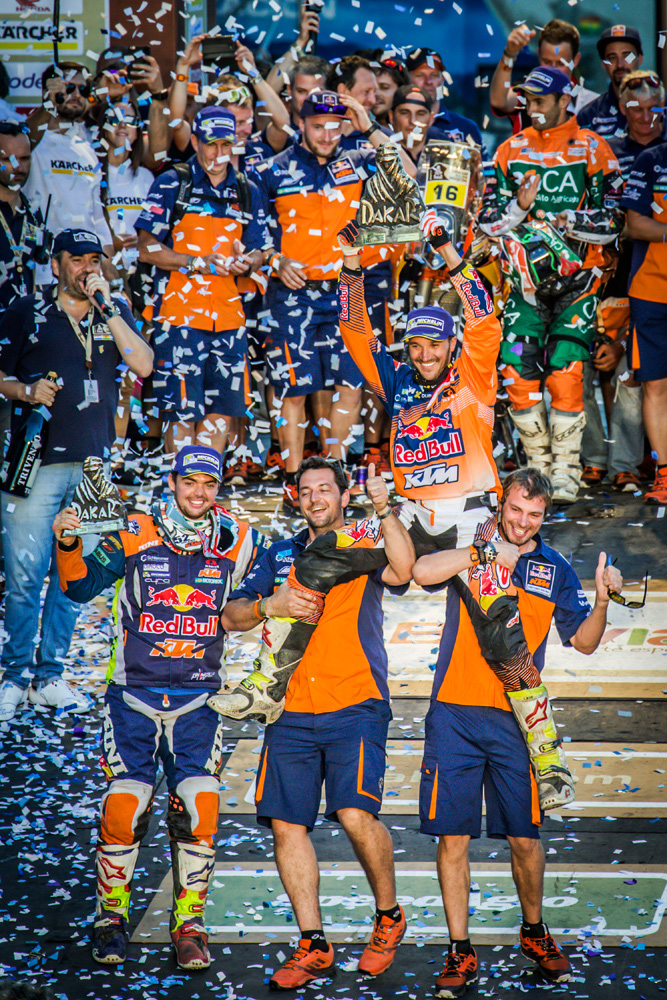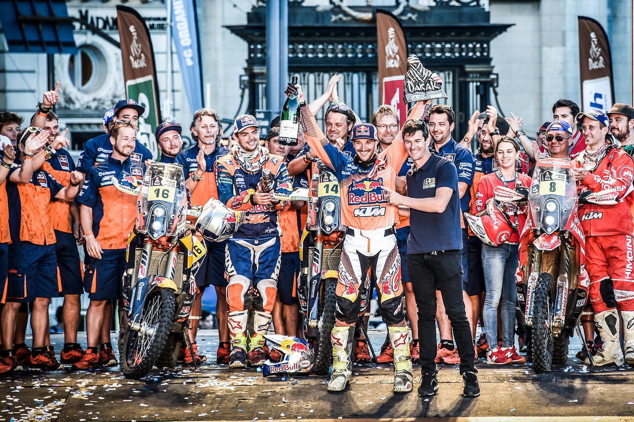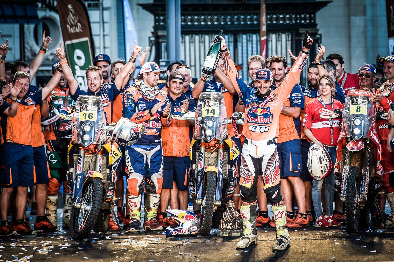 KTM 在達(dá)喀爾 2017 取得的勝利,讓他們?cè)谶@項(xiàng)比賽所保持著的記錄來(lái)到了十六連勝。除了 2008 年因?yàn)楸狈堑目植劳{而停辦之外,KTM 自 2001 年開始就一直至今贏得達(dá)喀爾的冠軍。而自 2011 年起、達(dá)喀爾統(tǒng)一規(guī)定賽車的最大排量被控制為 450 cc 之后,KTM 再次以勝利回應(yīng)了過(guò)往對(duì)他們采用更大排量賽車才能取勝的批評(píng)。