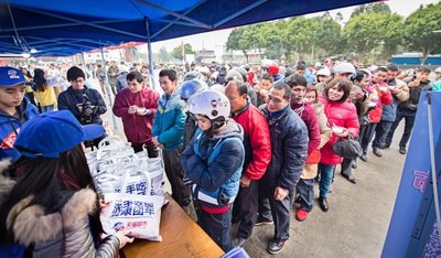 有志愿者問(wèn):“騎摩托車會(huì)不會(huì)拉年貨回家”,工人們擺手,“就帶兩套衣服,帶太多不安全,家里什么都有,就等著人回去。