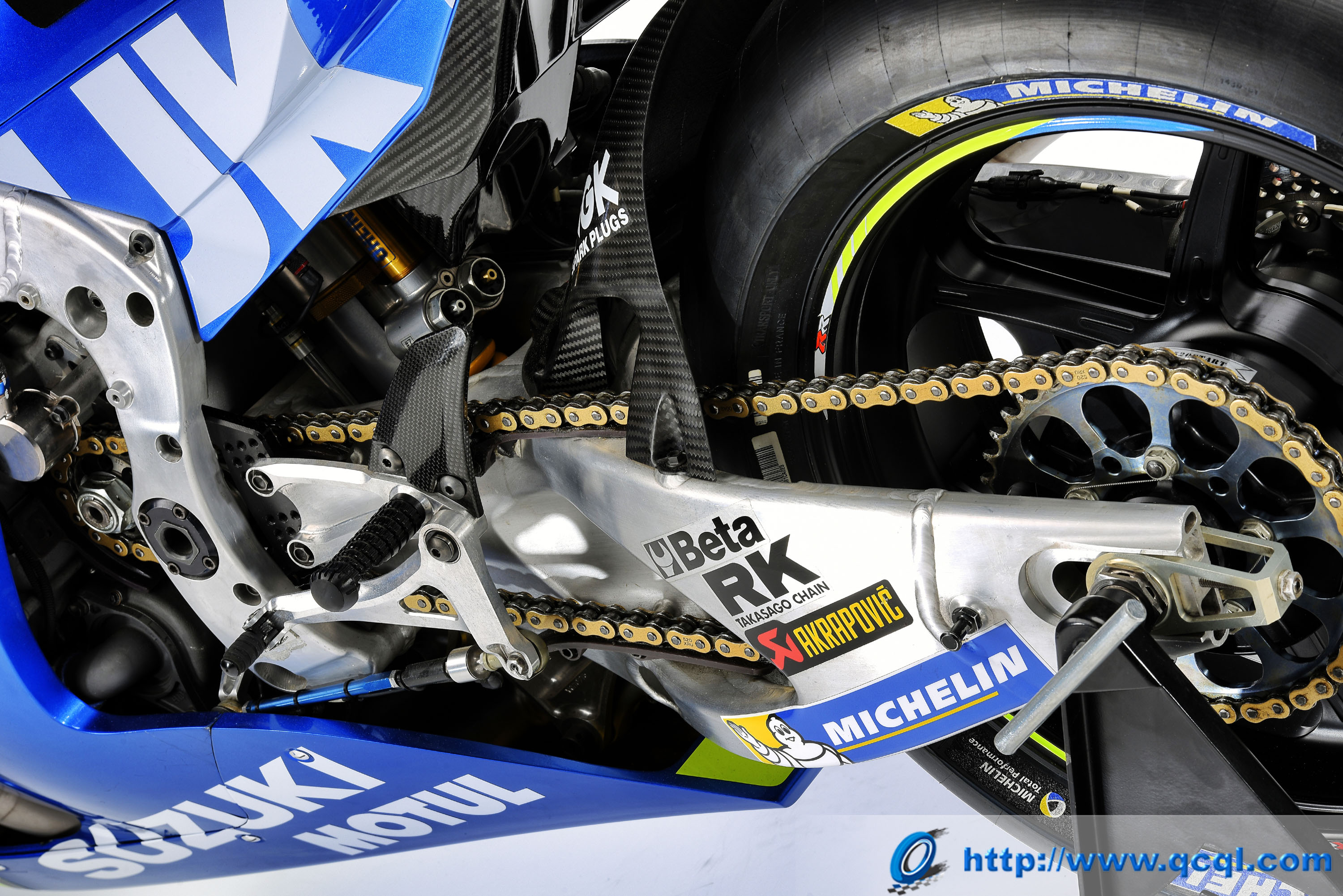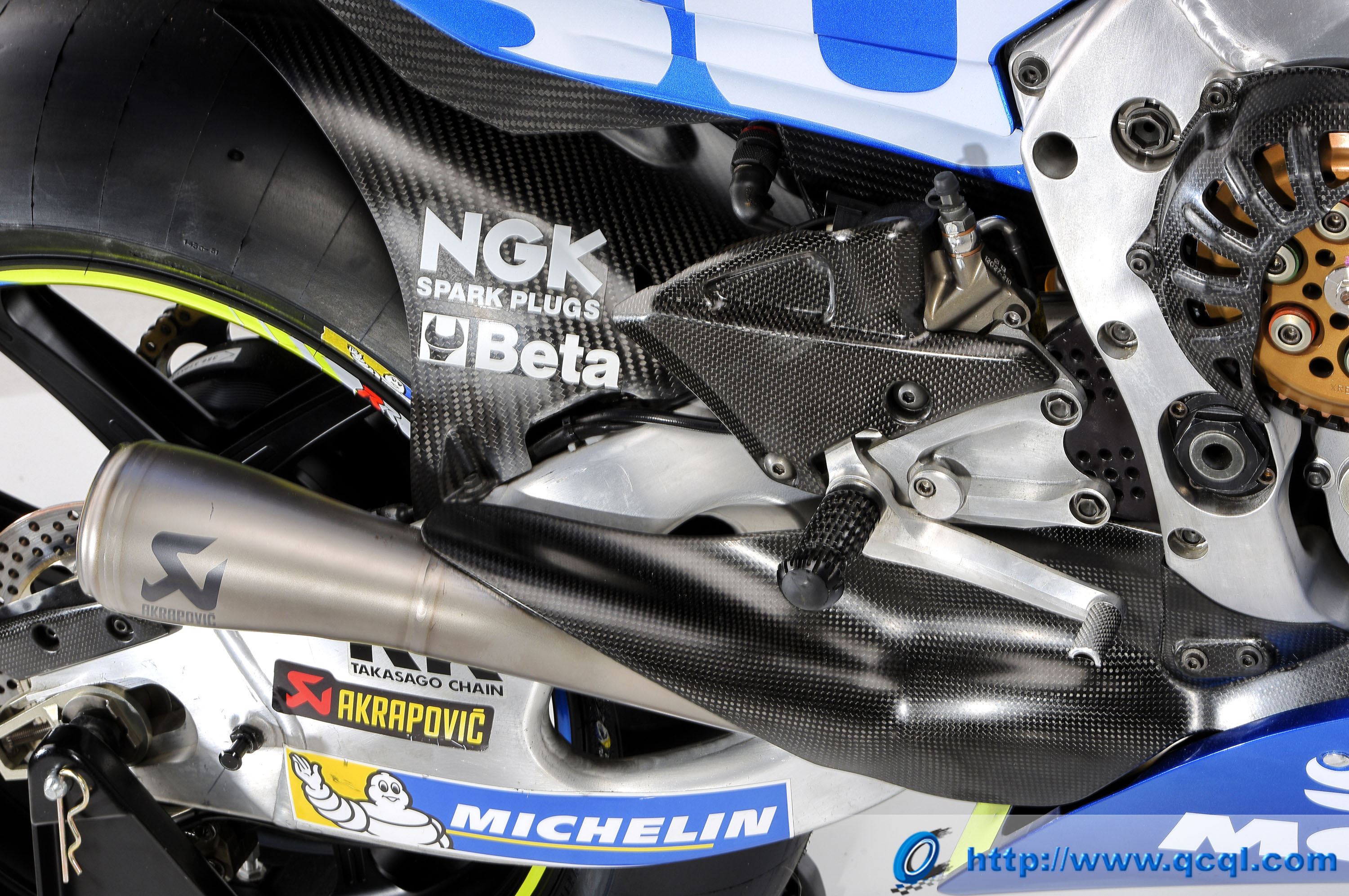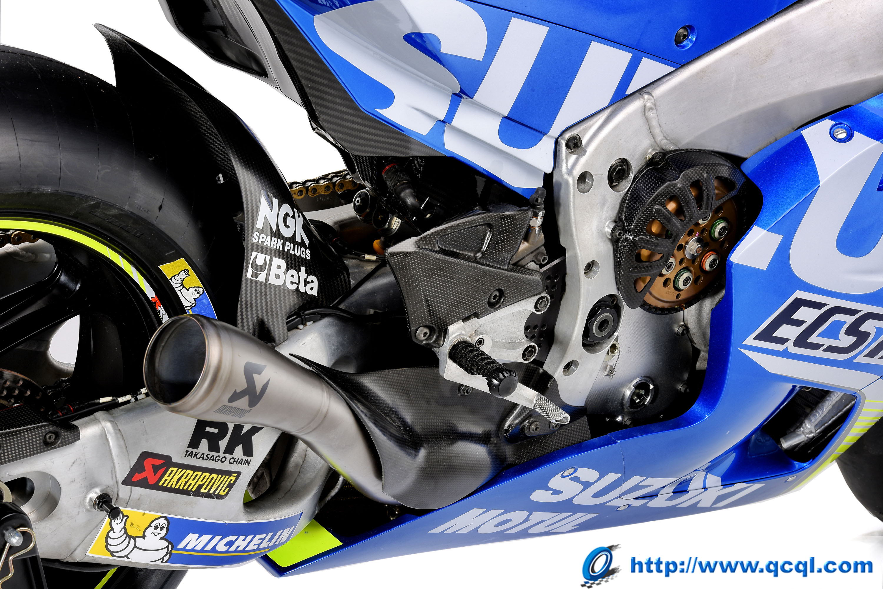 也許 MotoGP 里很多地方在現(xiàn)在看來(lái)似乎還存在遙不可及的距離,但實(shí)際上或許很多存在于我們希身邊的、只是暫時(shí)還沒(méi)深入的察覺(jué)而已(例如很多較新型的超級(jí)跑車就配備了來(lái)自MotoGP 的技術(shù)成果)。下面的圖片,是 Suzuki 用于參加今年 MotoGP 賽季的最新工廠賽車 2017' GSX-RR 的細(xì)節(jié)特寫(xiě)。希望能讓大家在圖片瀏覽的過(guò)程中找到可以觸動(dòng)你求知欲的部分、從而有所發(fā)現(xiàn)。