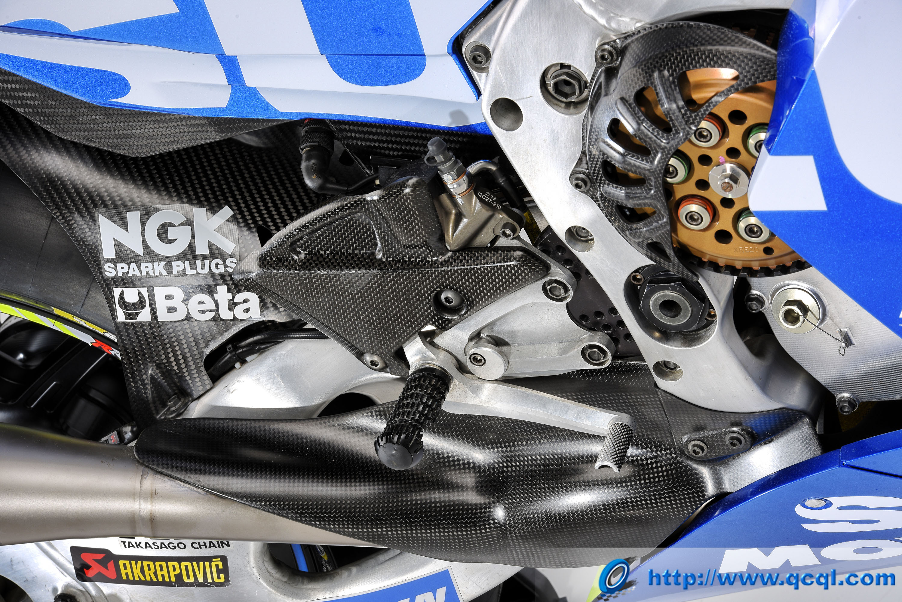 對(duì)于 MotoGP 的愛(ài)好者來(lái)說(shuō),工廠賽車的每個(gè)細(xì)節(jié)都是一個(gè)值得去端詳?shù)牡胤?。只要?duì)技術(shù)性的元素有一些基本的了解,就可以挑動(dòng)了求知欲,因?yàn)槟銜?huì)知道這部賽車?yán)锏拿恳粋€(gè)細(xì)節(jié)都包含著很多的學(xué)問(wèn)、哪怕就只是一顆螺絲(除了材料的獨(dú)特性所帶來(lái)的 強(qiáng)度,還有復(fù)合加工過(guò)程的高精度),更不用說(shuō)到處都布滿著的電子感應(yīng)線,碳纖和鈦合金、鎂鋁合金材料的廣泛應(yīng)用。