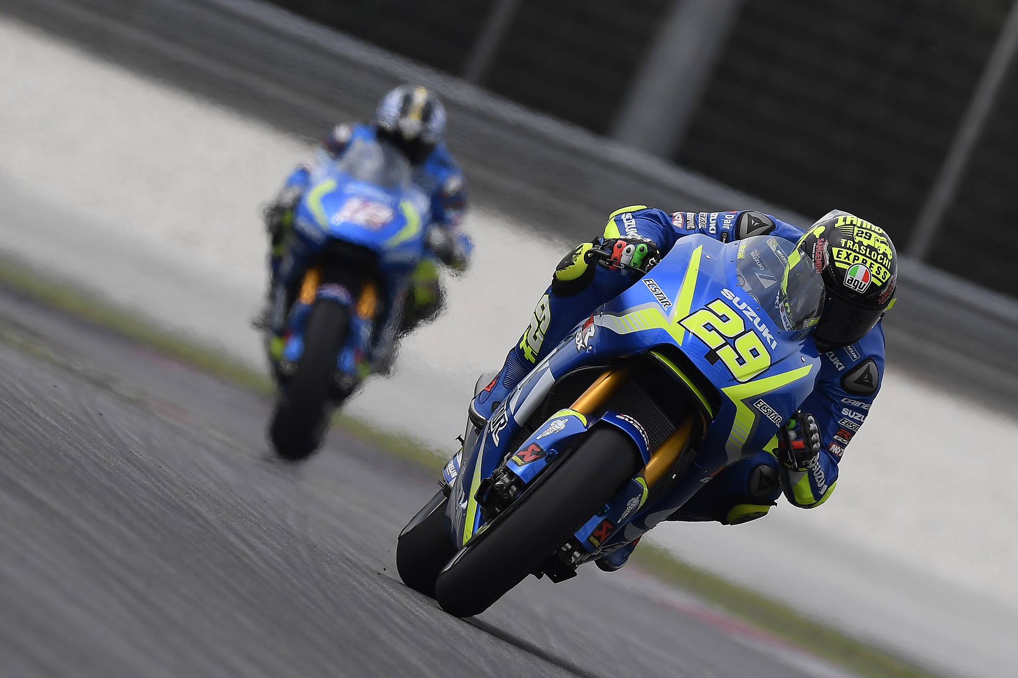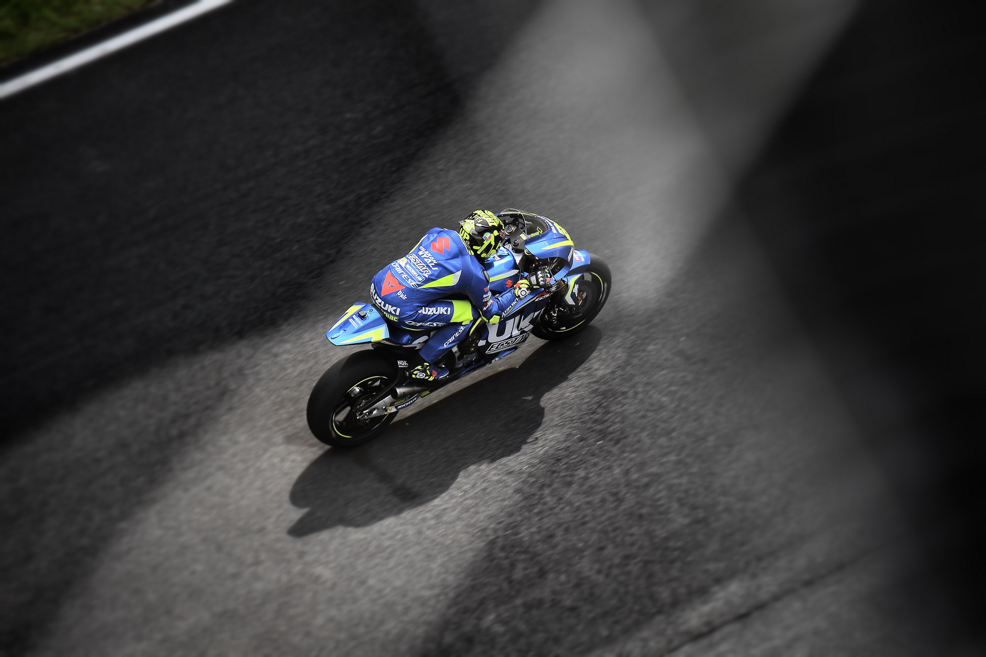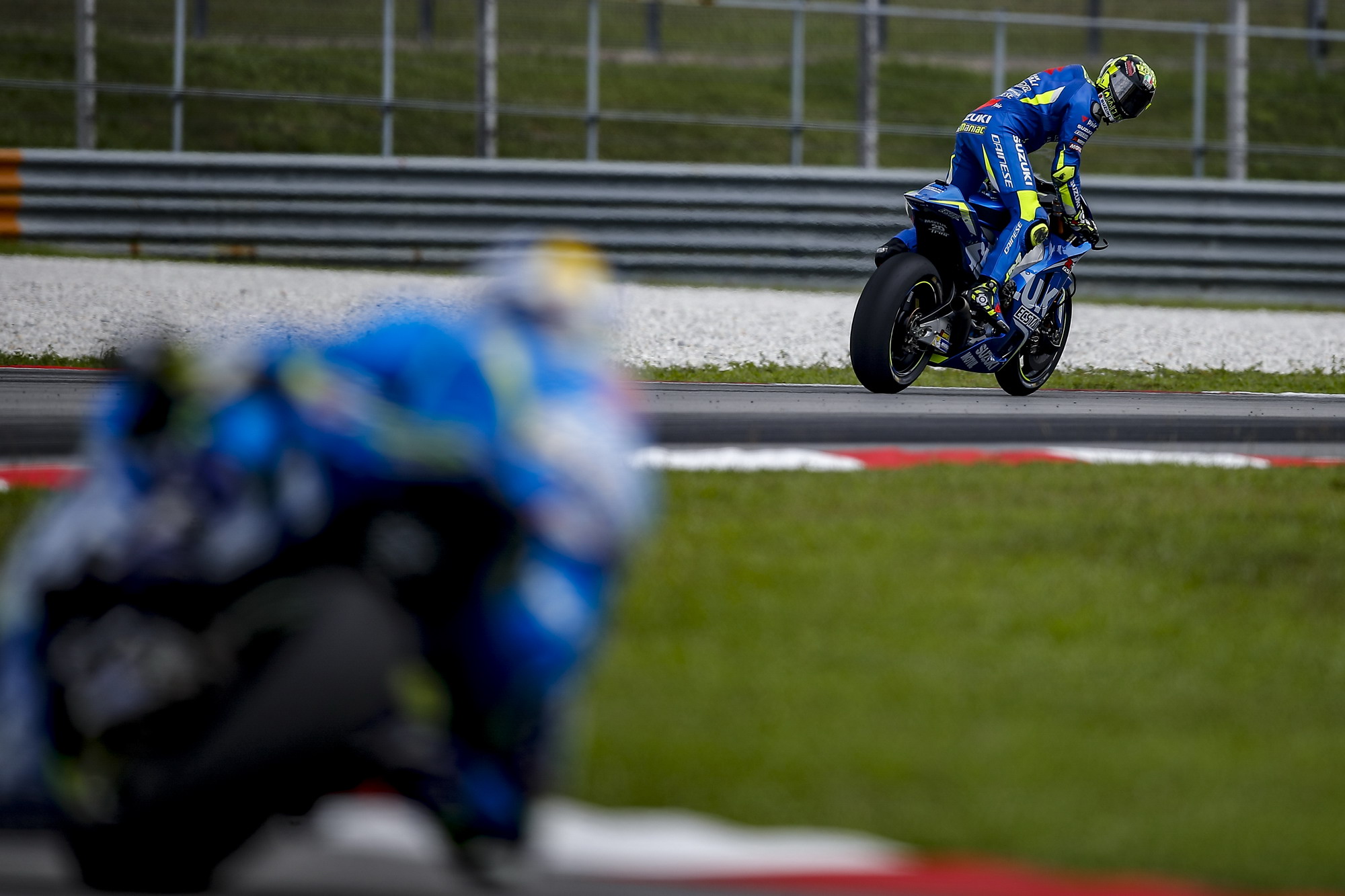 今天(一月 31 號(hào))是測(cè)試的第二天,早上的時(shí)候跑道因?yàn)樵羞^(guò)陣雨而略有水跡,很多車(chē)手都待 到了靠近中午的時(shí)候才出去跑一下。最終同樣只有兩位車(chē)手跑進(jìn)了 1 分 59 秒的大關(guān):Suzuki 車(chē)隊(duì)的恩諾尼跑出了 1 分 59.452 秒,Yamaha 車(chē)隊(duì)的小將維那尼斯跑出了 1 分 59.858 秒。