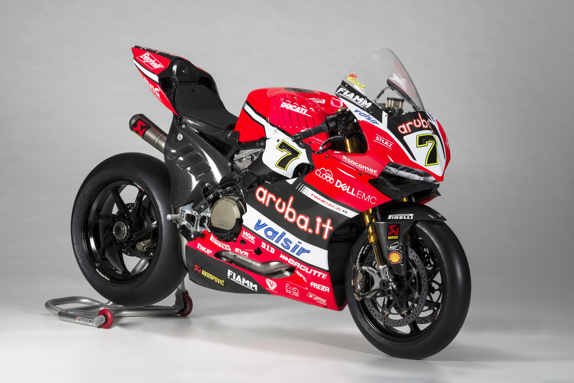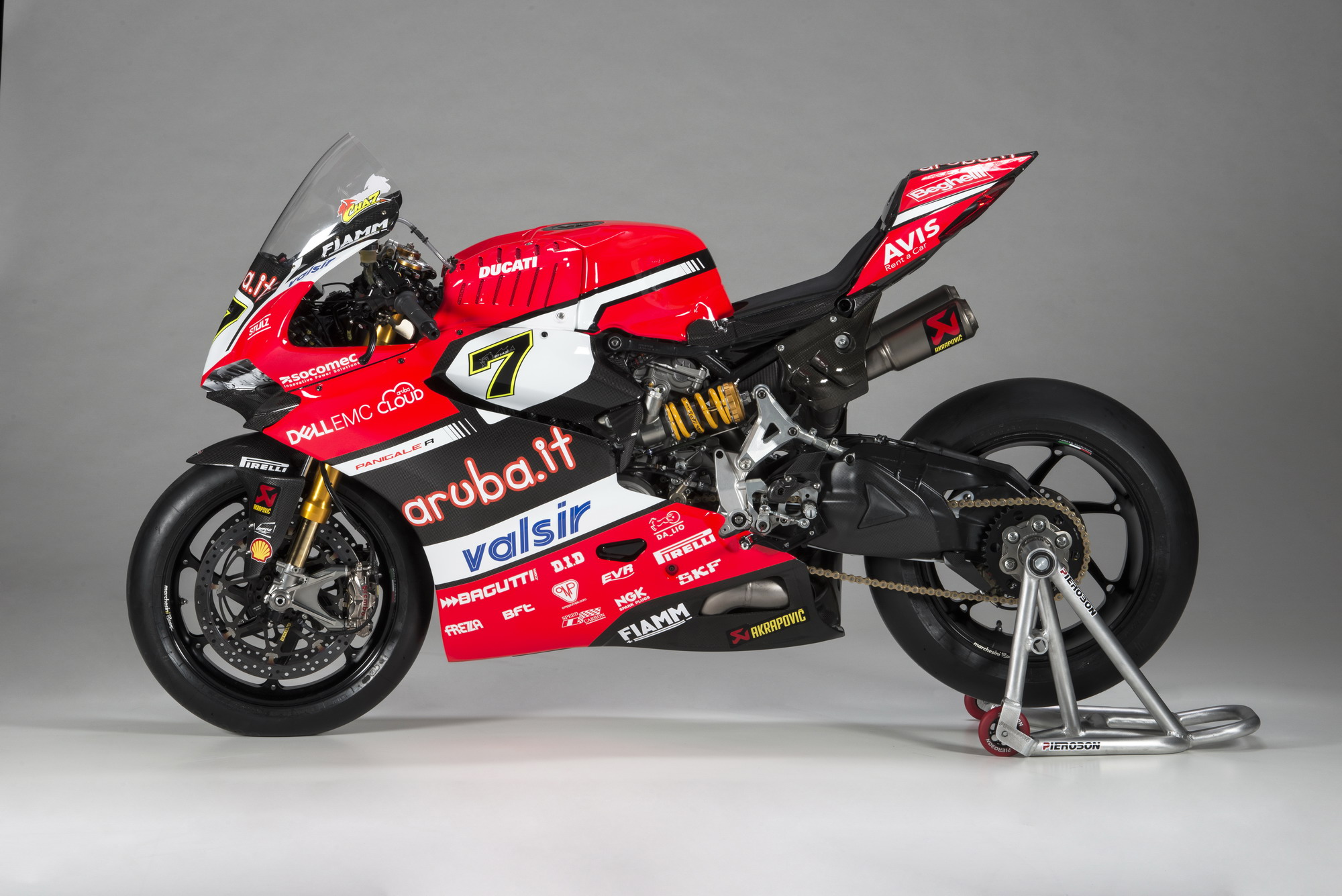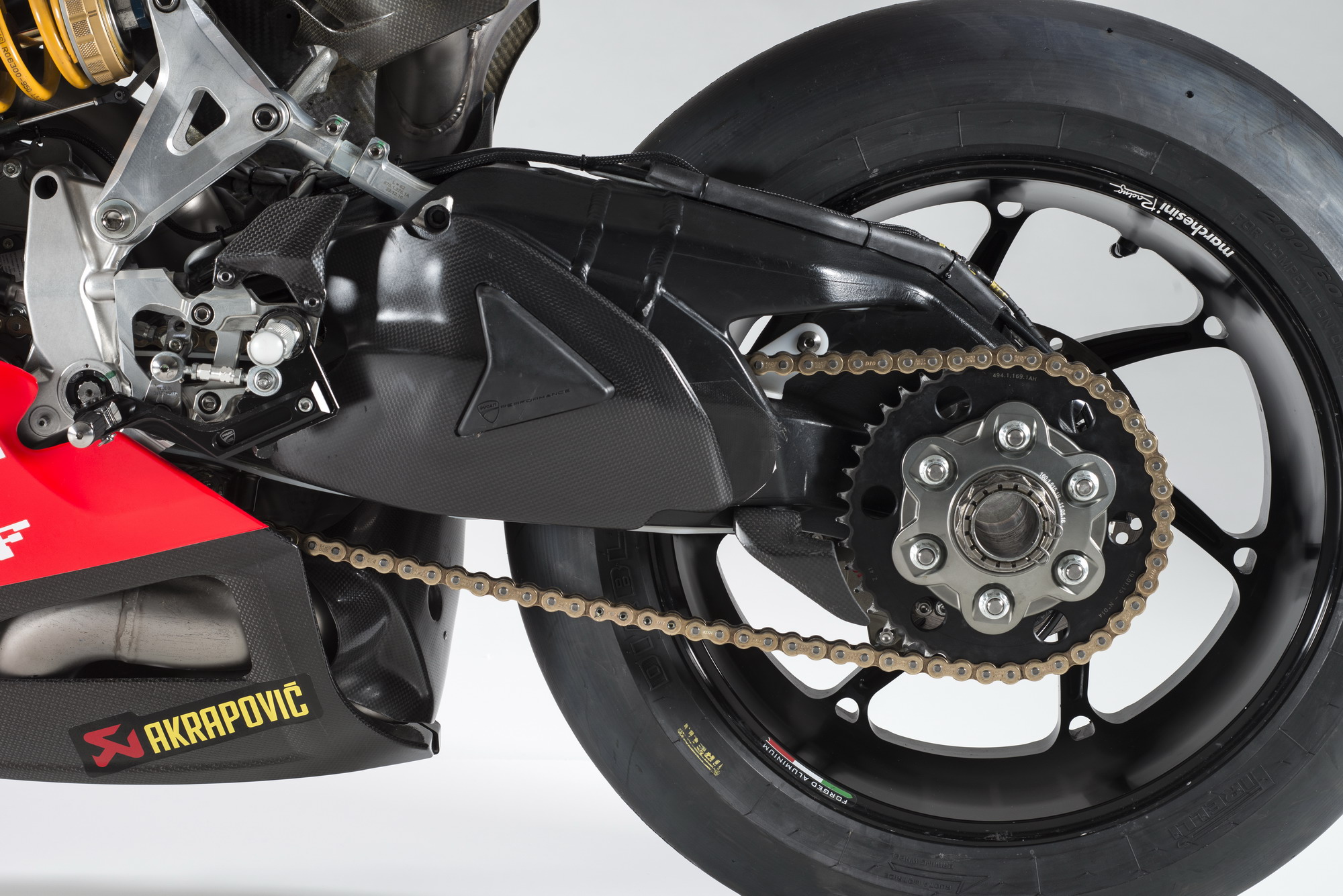 車身方面,采用了奧林斯的前、后懸掛系統(tǒng),貝博的剎車,Marchesini 的鋁合金鍛造輪框,以及來自 Akrapovic 的鈦合金排汽系統(tǒng)。廠方表示,與舊的 2016 版本賽車相比,新的 2017 版工廠賽車在發(fā)動(dòng)機(jī)、底盤和電子系統(tǒng)方面都經(jīng)過了改進(jìn)。
