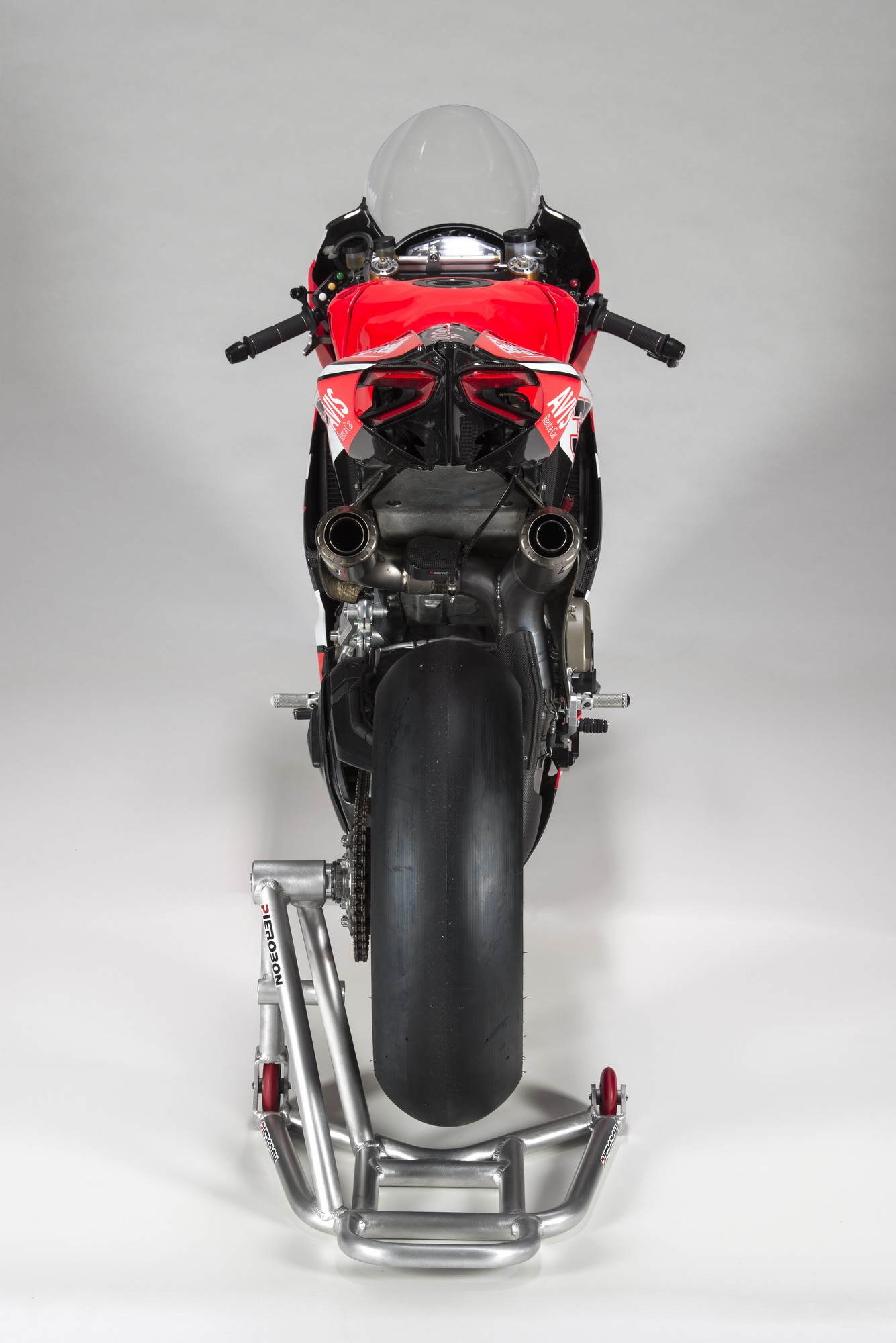 “ 帕加尼 ” R 工廠賽車由市售版的  “ 帕加尼 ” R 升級(jí)而來(賽例的要求是 WSBK 的參賽車輛,銷售數(shù)量至少要達(dá)到三百輛以上),根據(jù)廠方公布的資料,這部工廠賽車搭載一副水冷四沖程 L 型兩汽缸、Desmodromic 汽動(dòng)式每汽缸四汽閥的 Superquadro 發(fā)動(dòng)機(jī),排汽量 1,198 cc,夸張的、接近 2:1 的缸徑、行程比(112 mm x 60.8 mm),三菱的每汽缸雙噴嘴電子燃油噴注系統(tǒng),最大動(dòng)力輸出 215 匹(曲軸輸出。市售版 “ 帕加尼 ” R 的最大馬力輸出為 205 匹)。