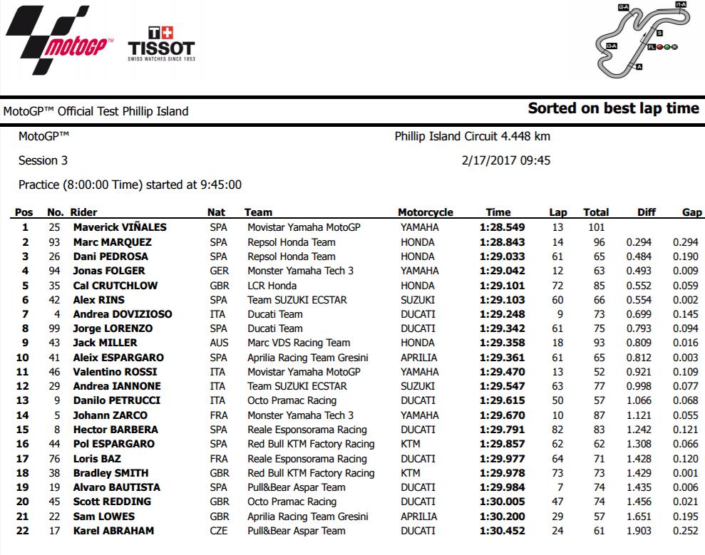 上周的二月 15、16、17 號,MotoGP 季前測試一連三天在澳大利亞的菲列普島賽車場進行。