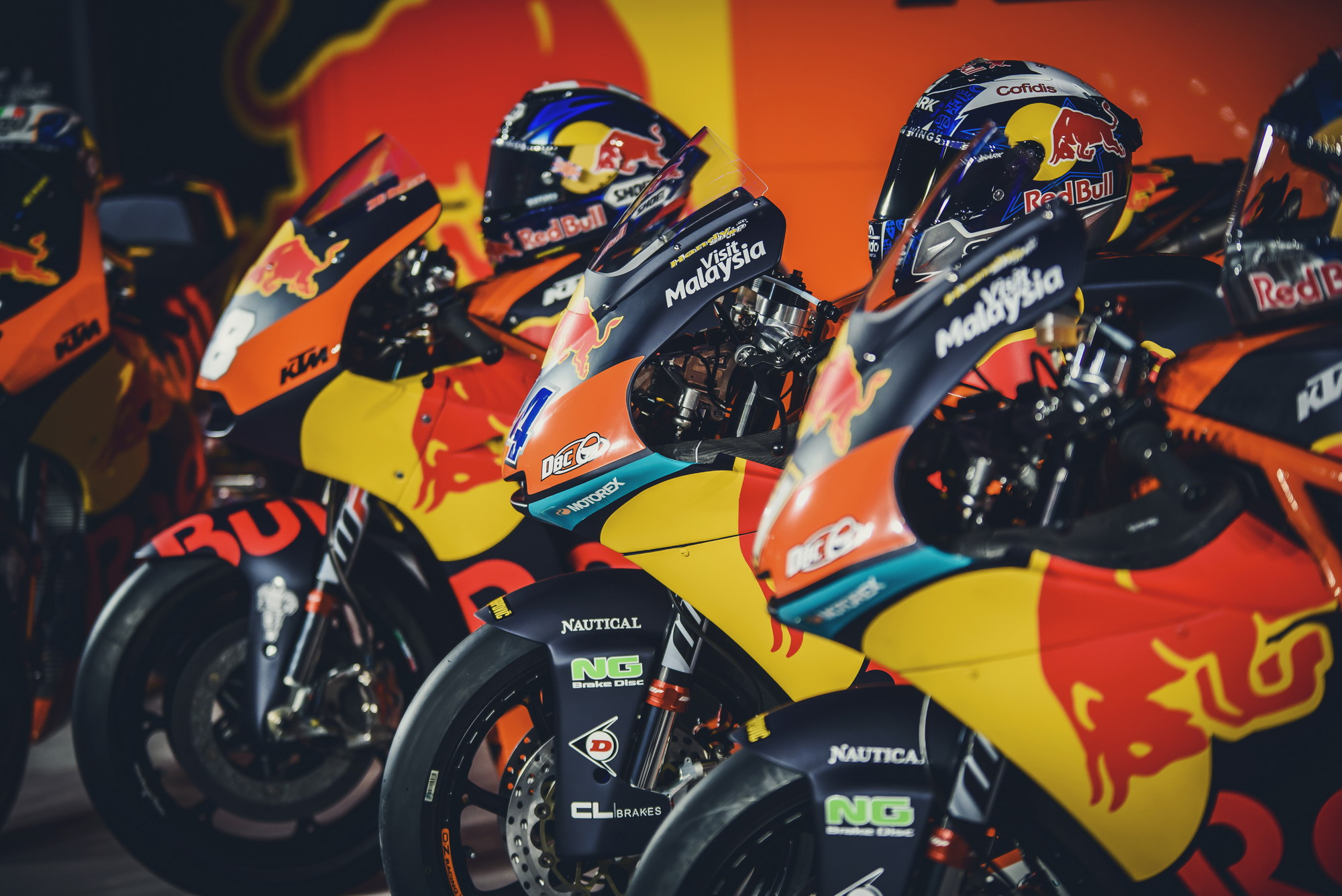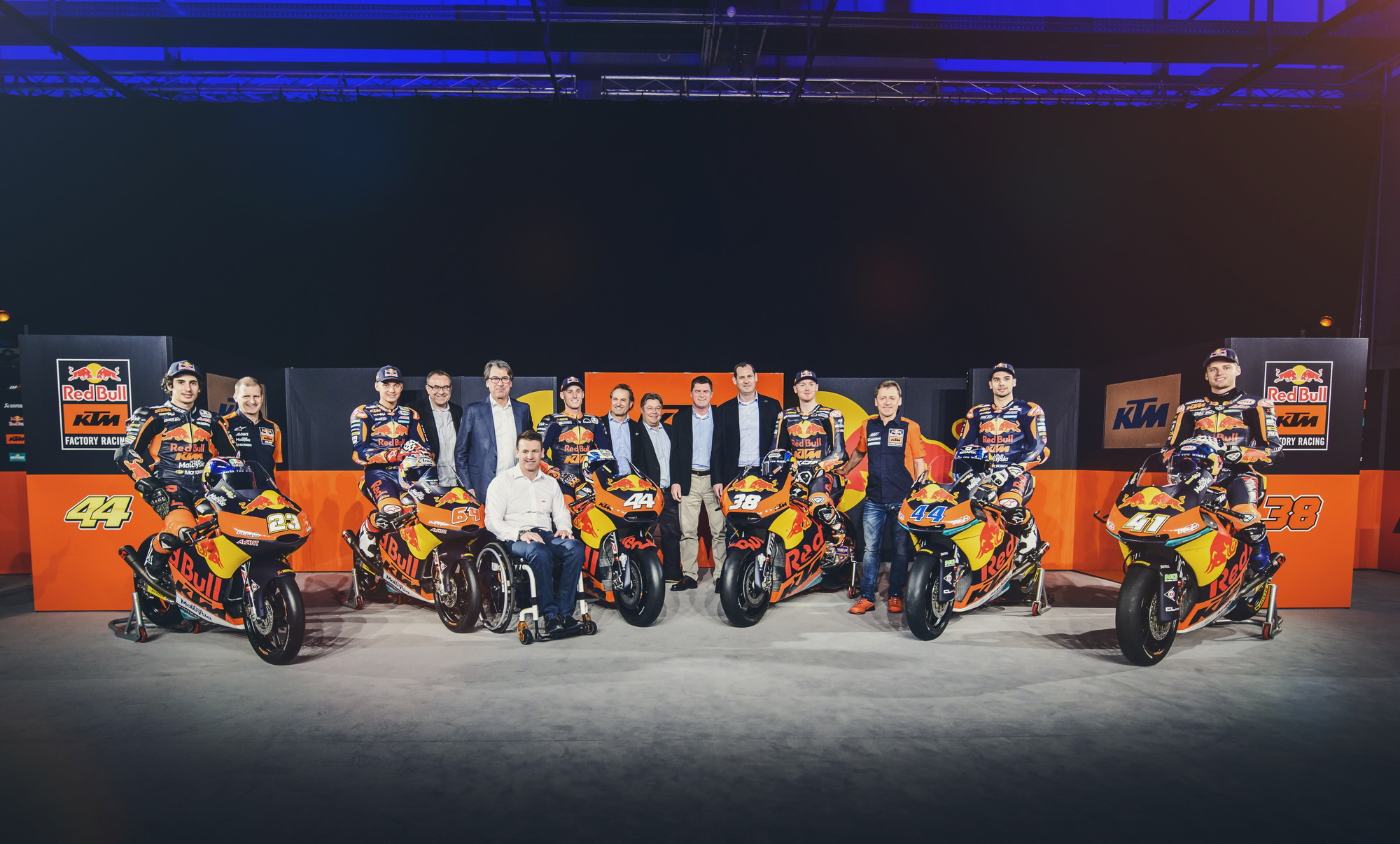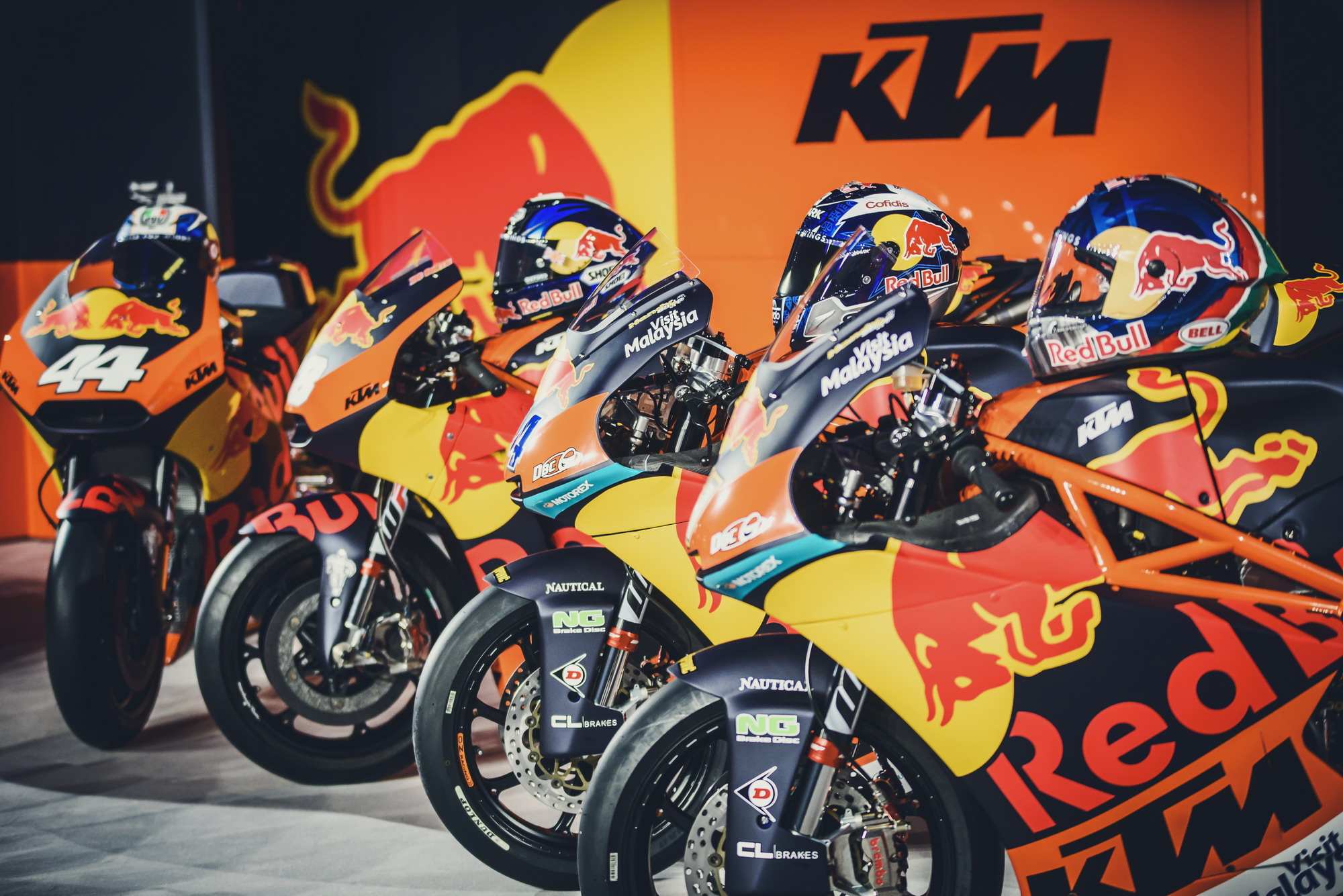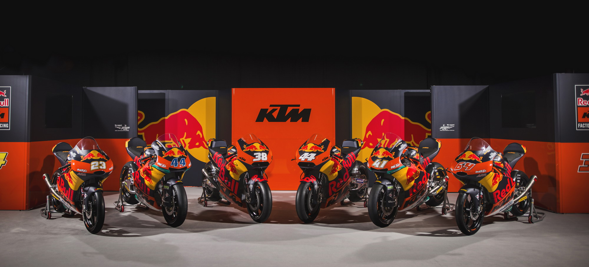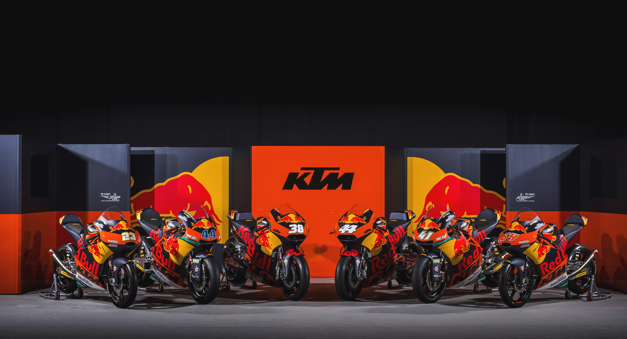 KTM 今年將在 MotoGP 的三個級別中各有一支工廠車隊(每支車隊兩名車手)參賽,紅牛成為了 KTM 今年參加 MotoGP 全部三個級別比賽的工廠車隊主贊助商,而賽車都使用了與過往不同的、新設(shè)計的車體圖案。