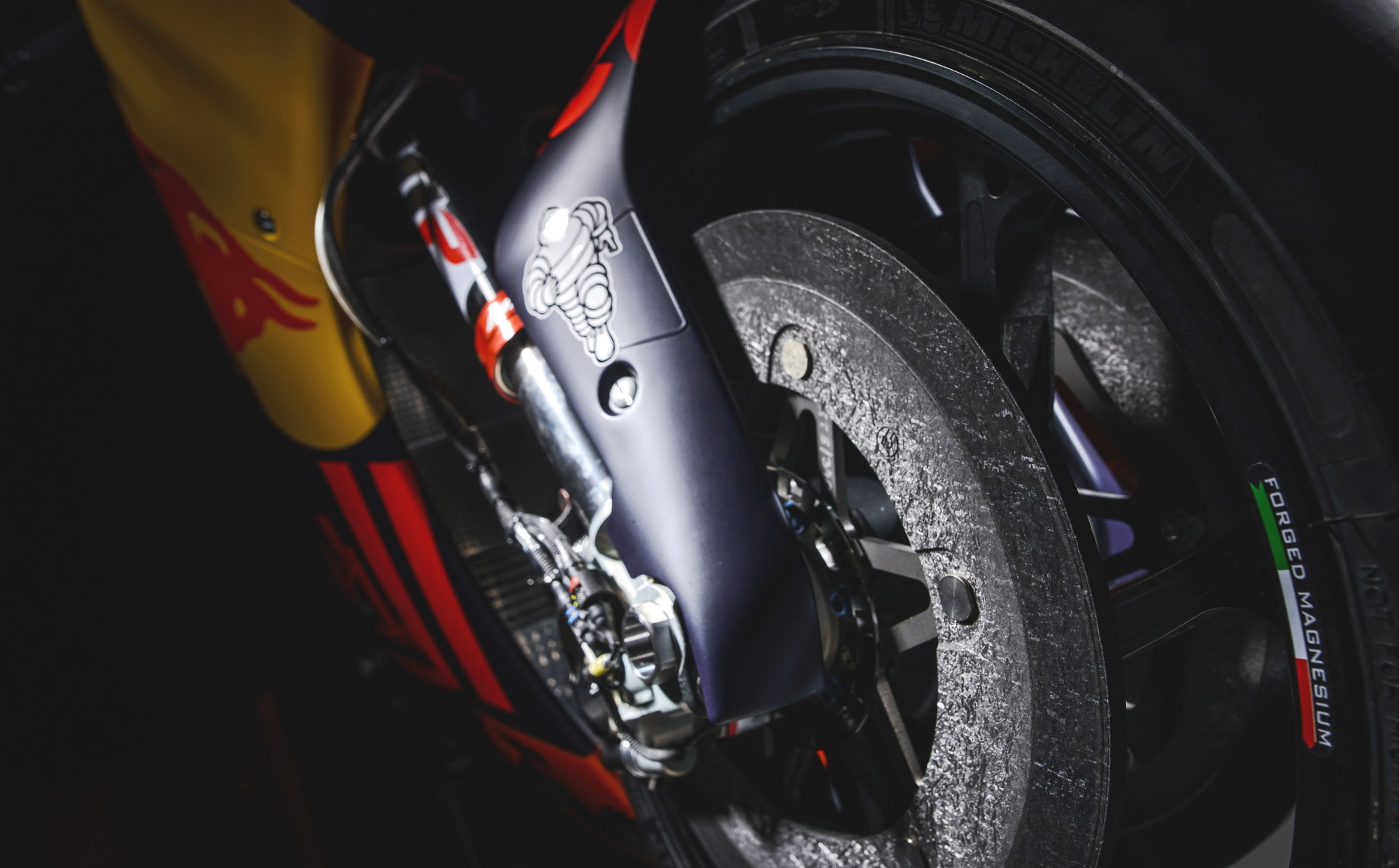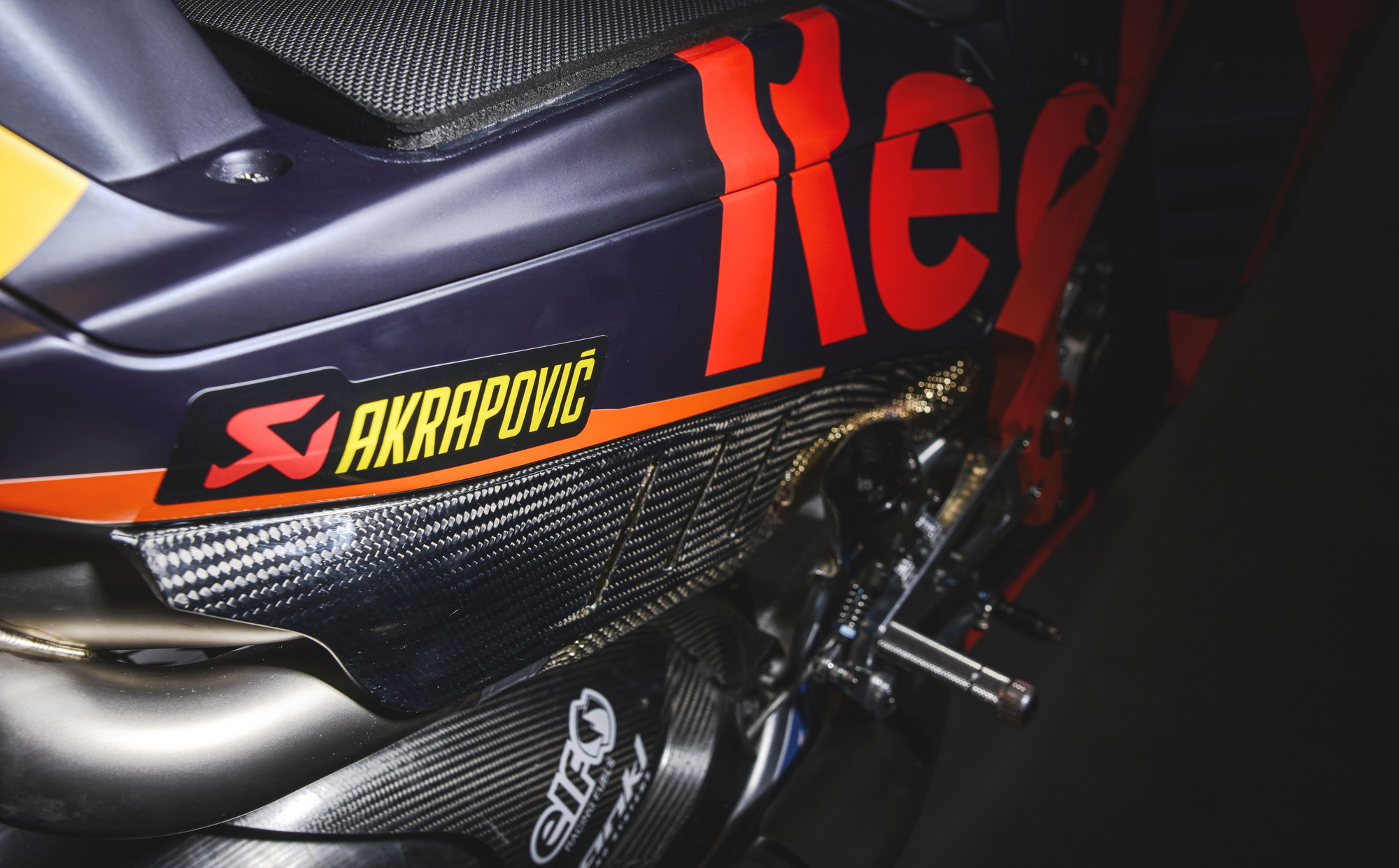 車(chē)身方面,采用一個(gè)鋼管式的車(chē)架、鋁合金后搖臂,WP 的前后懸掛,Brembo 的制動(dòng)系統(tǒng),Akrapovic 的排汽,整車(chē)的最低重量為 MotoGP 賽例所規(guī)定的 157 公斤以上。