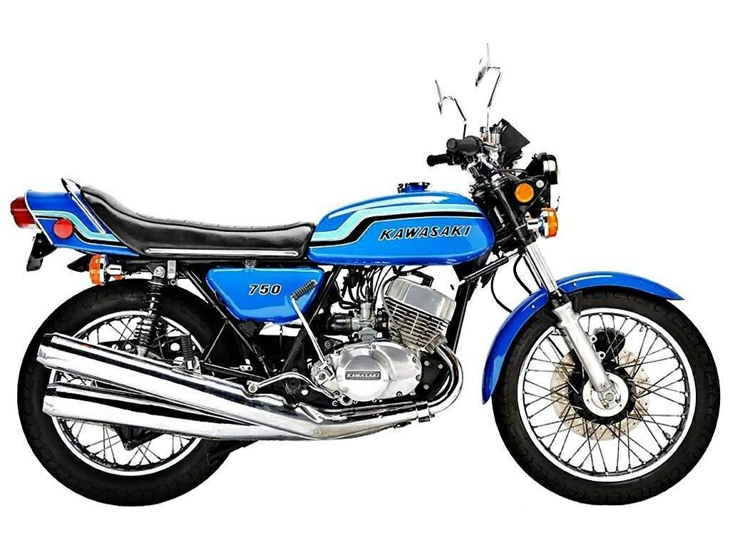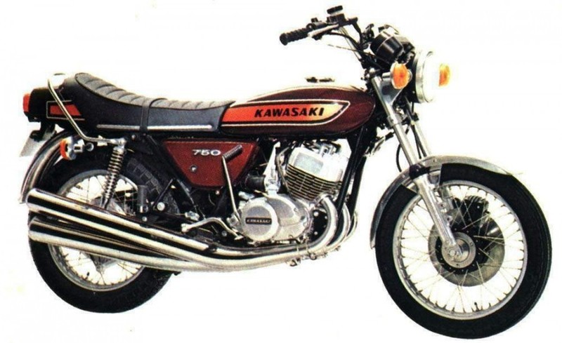 下圖:搭載風(fēng)冷兩沖程直列三汽缸發(fā)動機的 Kawasaki 1971' KH 750SS Mach 4。