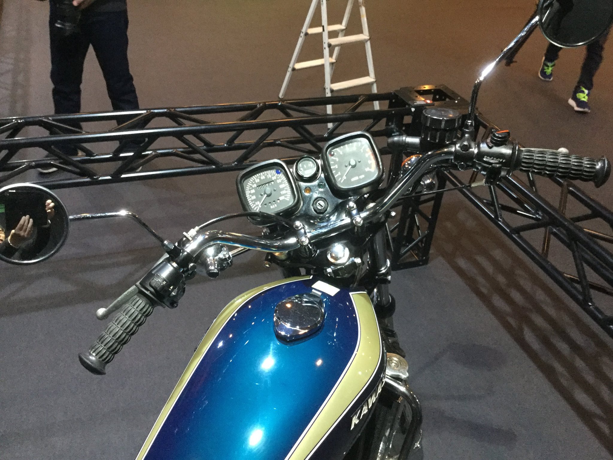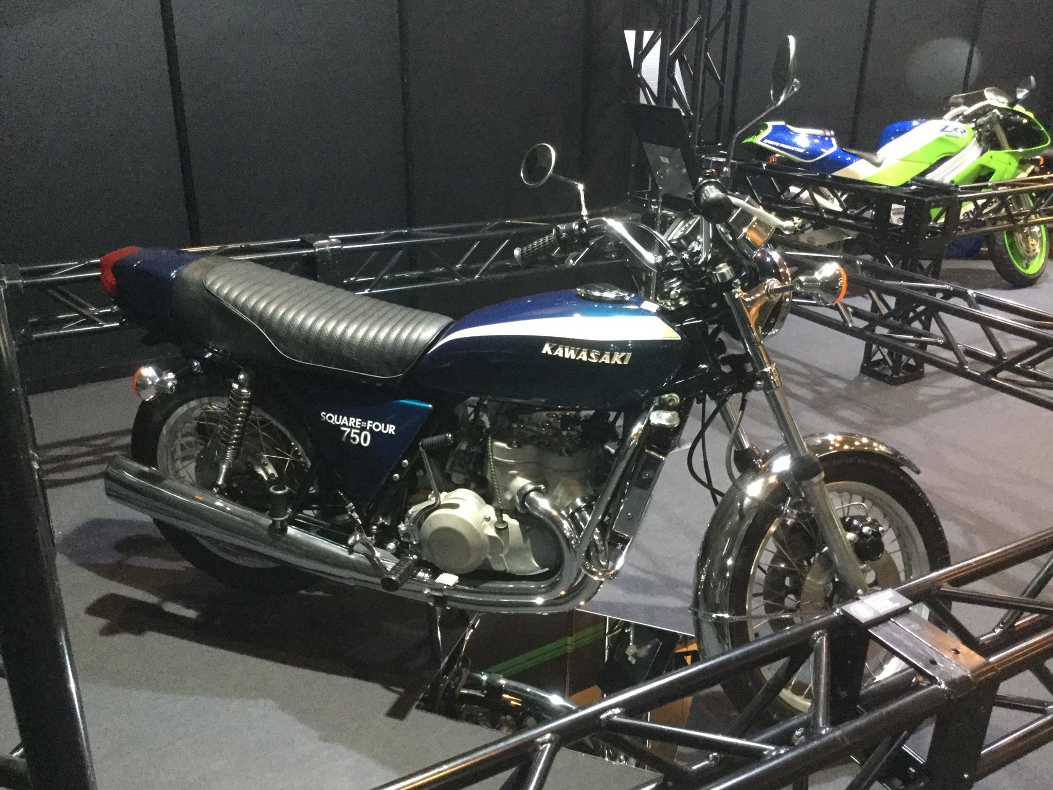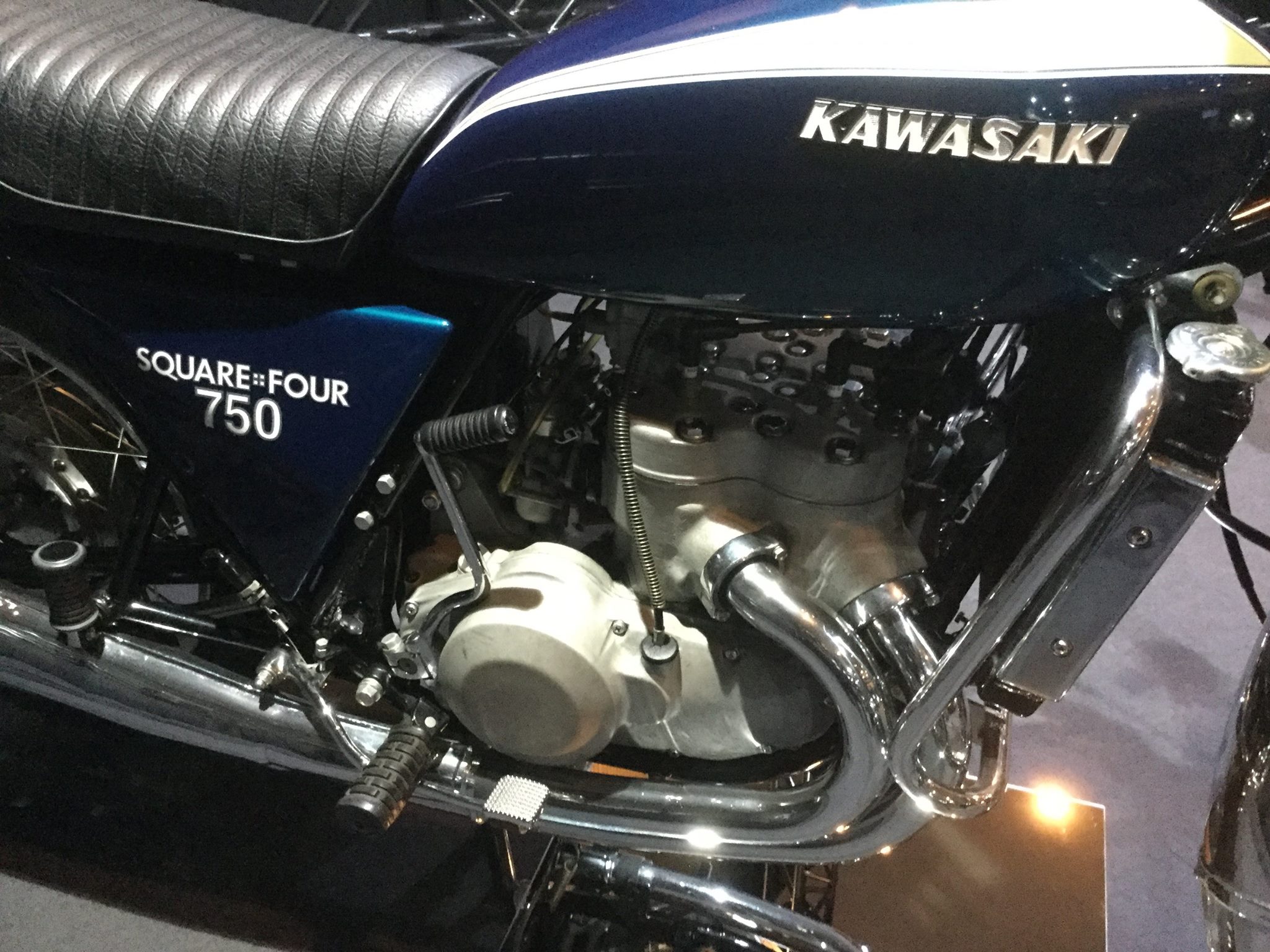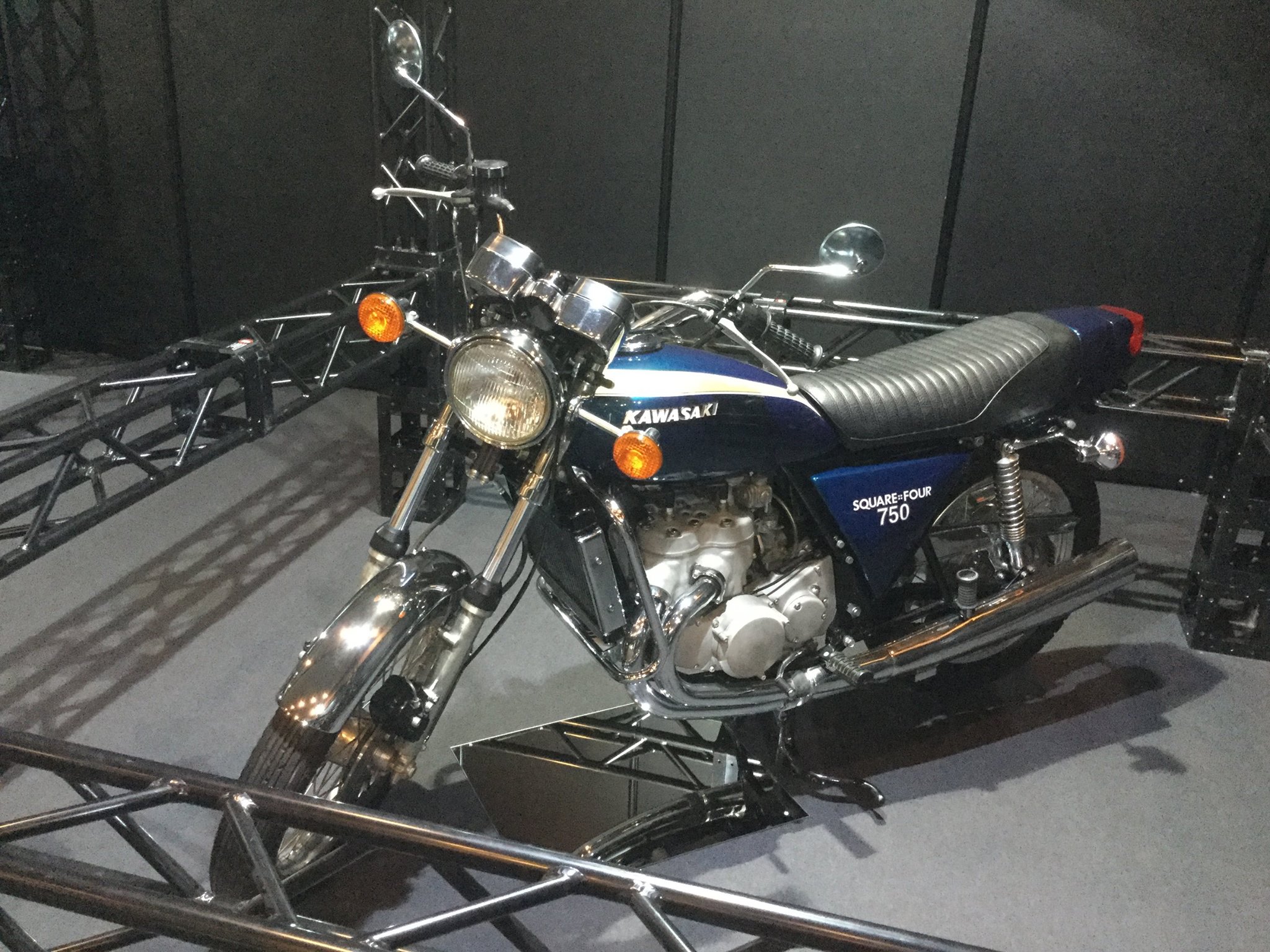 早前在日本本土舉辦的 Kawasaki 博覽會上,廠方展示了他們當(dāng)年所開發(fā)的一部無限接近量產(chǎn)的樣車:1973' Square-Four 750 “ 正方四 ”(或按照翻譯網(wǎng)站所講的 “ 正方排列四缸 ”)。