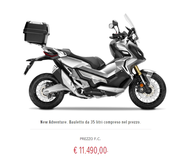 新的 X-Adv 零售價格與同為非當地生產的 CB 1100 ABS 相當(11,500 歐元)。而意大利當地生產、搭載老款直列四汽缸 CBR1000RR 發(fā)動機的 CB 1000R ABS 的零售參考價則只是 11,045 歐元。