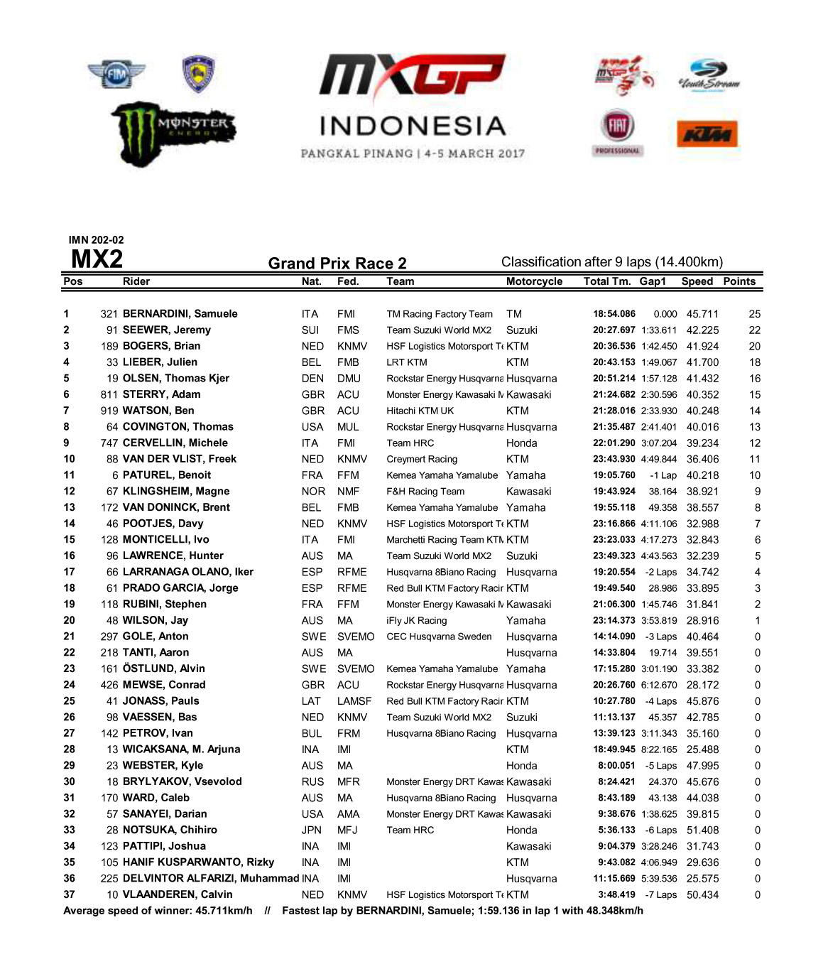 下圖:MX2 級(jí)別第二節(jié)賽事成績(jī)