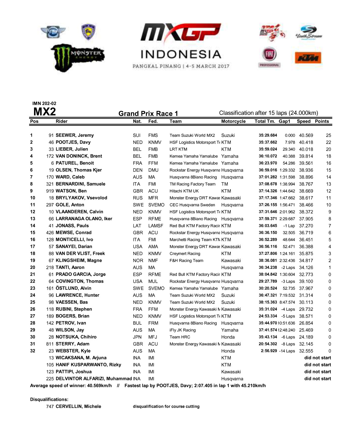 2017' MXGP(世界越野錦標(biāo)賽)第二站的比賽,三月5號(hào)在印尼舉行。兩個(gè)級(jí)別(MXGP、MX2)總共四節(jié)的比賽,都面對(duì)著天氣的挑戰(zhàn)。其中 MXGP 的第二節(jié)比賽,更被直接取消。而每當(dāng)面對(duì)復(fù)雜的天氣狀況,當(dāng)然就是黑馬要跑出來的時(shí)候。