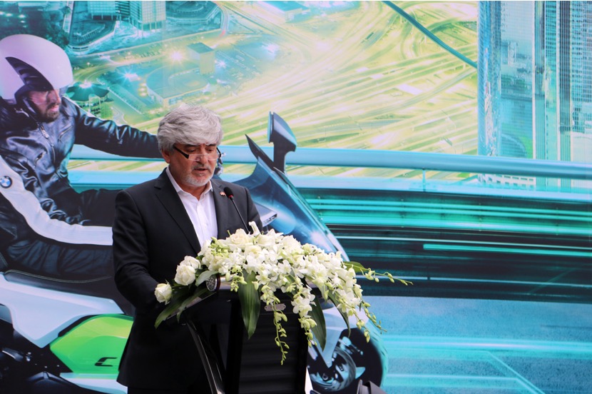 寶馬摩托中國區(qū)總裁Ekrem Sak在此次交付儀式上致辭,表明了寶馬摩托不僅僅是一個摩托車的品牌,更是一種獨具感召力的生活方式,而本次交付新區(qū)使用的寶馬電動摩托車C evolution也代表著寶馬摩托車在電動車領(lǐng)域的先進技術(shù),體現(xiàn)出寶馬集團在創(chuàng)新推動、環(huán)境保護上新的典范,為城市出行提供了更環(huán)保、更現(xiàn)代的解決方案。