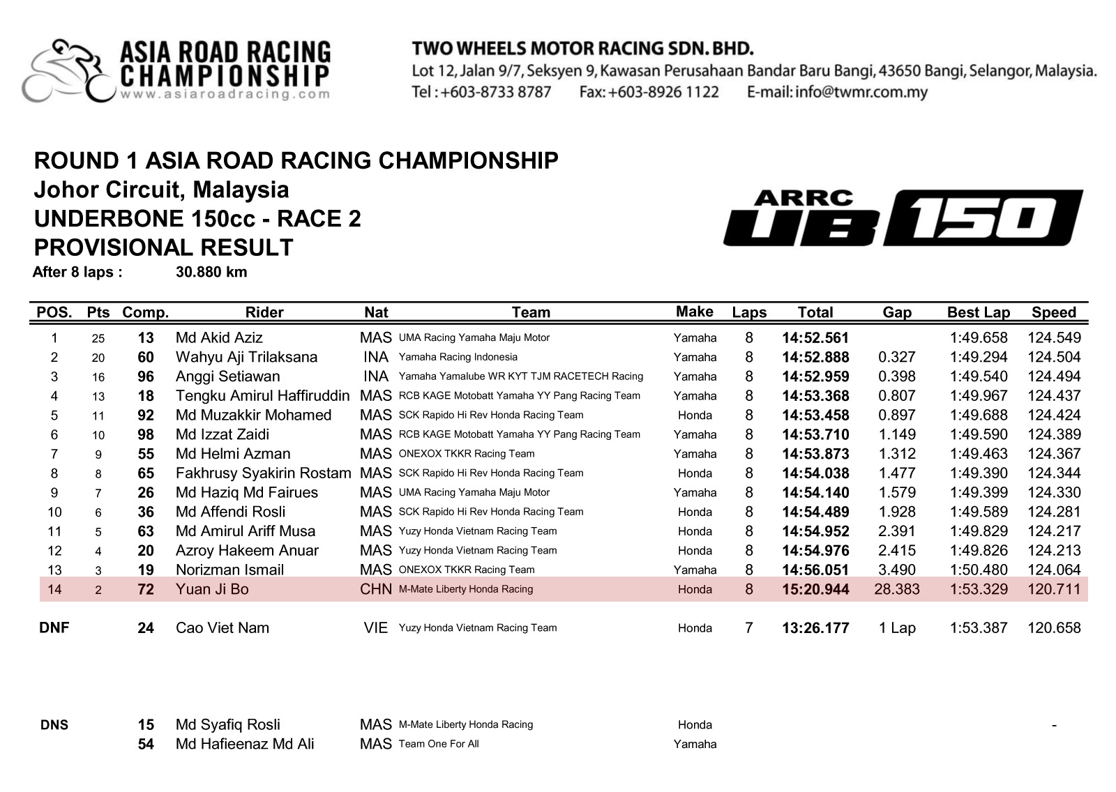 2017' 年度 ARRC 第一站,昨天在馬來西亞毗鄰新加坡的柔佛賽車場舉行了第二天的賽事