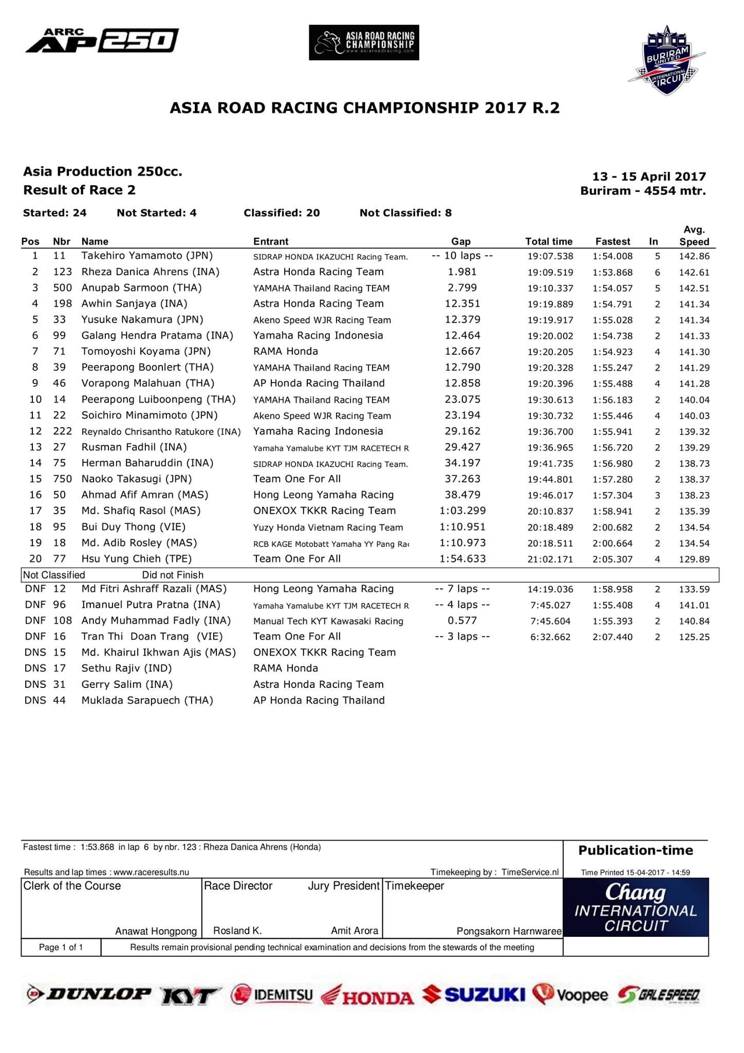 2017 ARRC 泰國站,AP250 級別第二節(jié)比賽成績