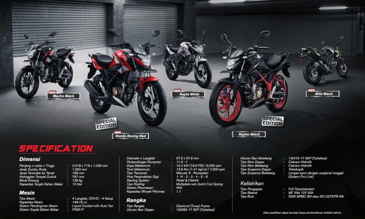 這部新的小型街車搭載了來自當?shù)刈钚掳姹?2016' CBR150R 的那副水冷四沖程單汽缸、DOHC 四汽閥的發(fā)動機,PGM-FI 電子燃油噴注系統(tǒng)、六檔的變速箱,最大動力輸出達到了 12.4 kw(16.9 匹)。車身部分,就連鋼管制的搖籃式車架也來自于 CBR150R,全 LED 為光源的前后燈,數(shù)字式的儀表板,多連桿式的后懸掛。既可以街道使用、略加改裝之后又能滿足運動的需要,是這部新的 CB150R 打動年輕消費者的核心所在。