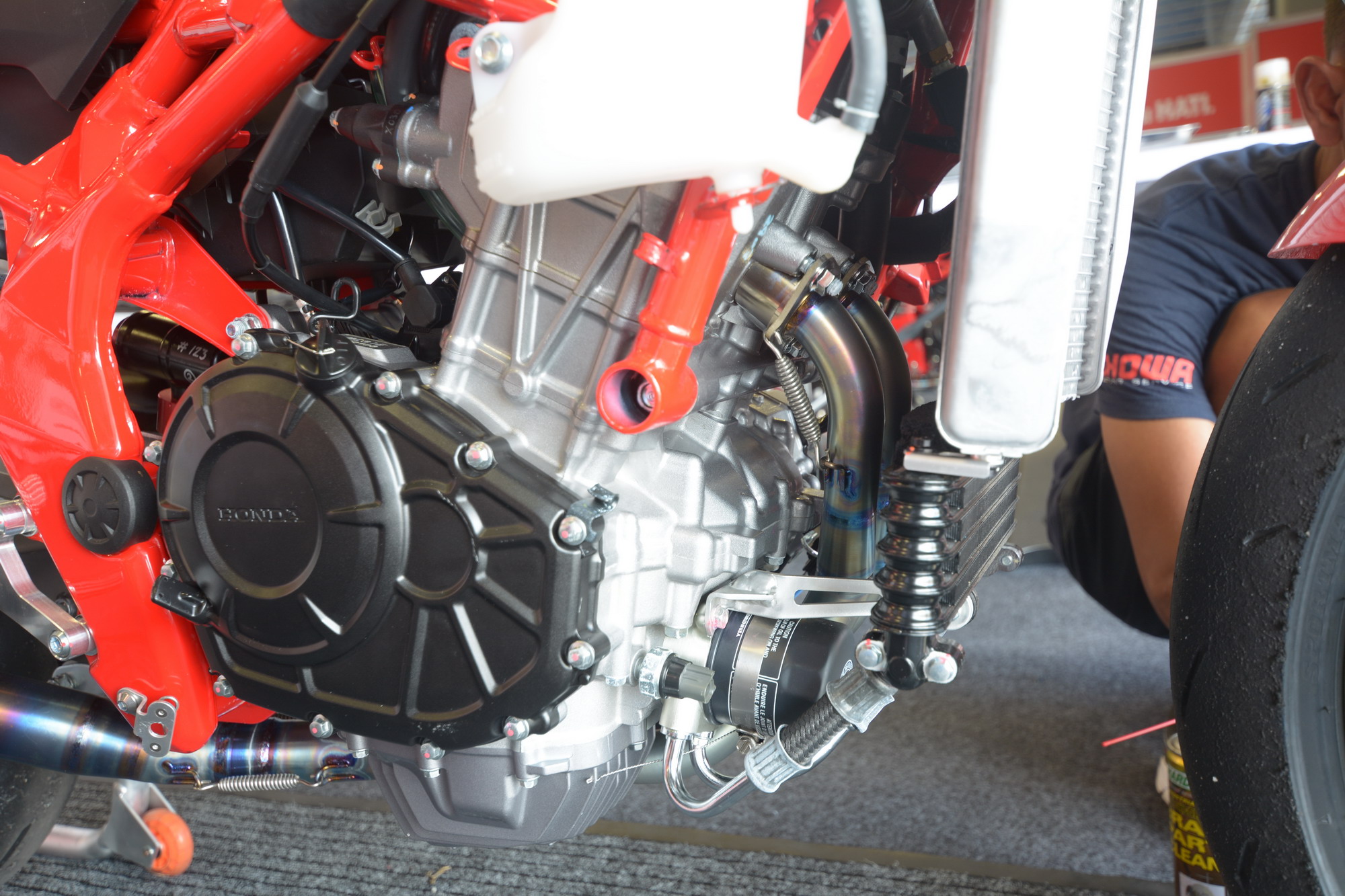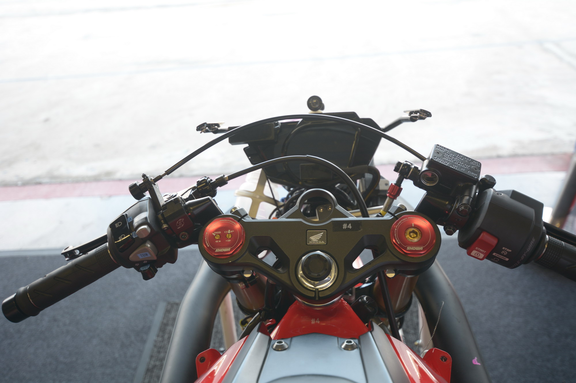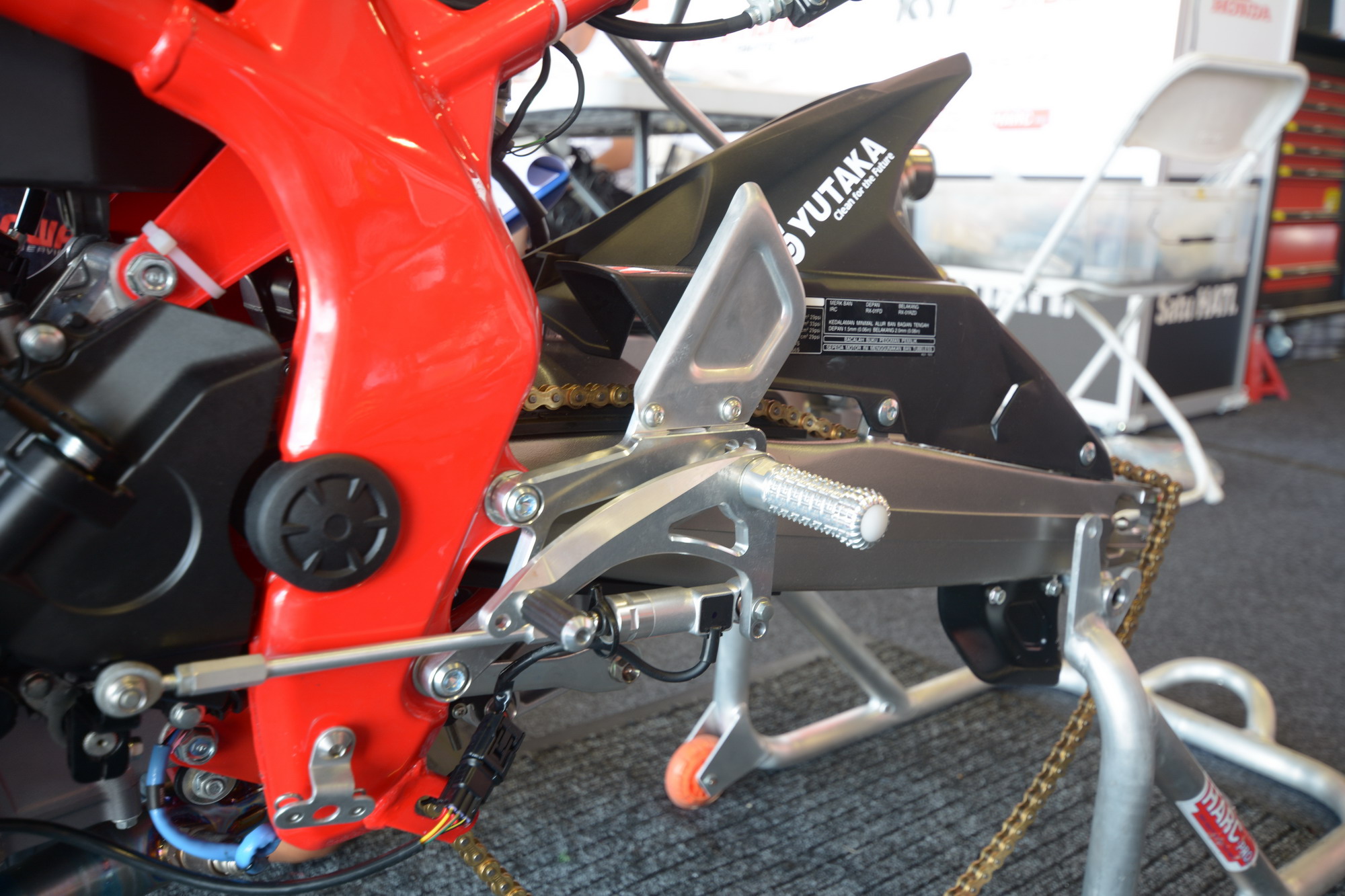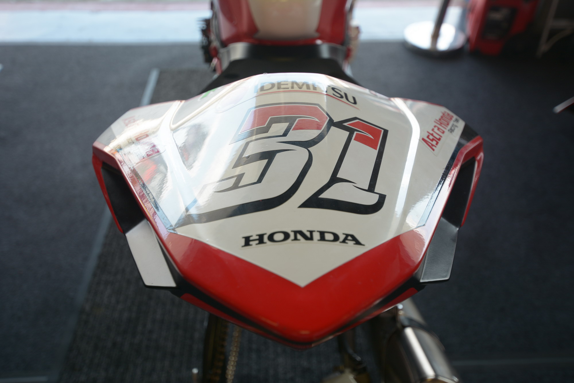 泰國站的比賽現(xiàn)場,我們?cè)诰S修站里看到了這臺(tái) CBR250RR 賽車,大部分都是原廠的組件,表面的改動(dòng)部分主要就是排汽系統(tǒng)、腳踏、懸掛內(nèi)部組件,至于最高境界的發(fā)動(dòng)機(jī)配汽系統(tǒng)(凸輪軸、汽閥、汽閥彈簧等)的研磨、微調(diào),則無法透過外部觀察而獲得答案。惟跑得很快的這樣一個(gè)成績,來顯示其強(qiáng)大的性能。