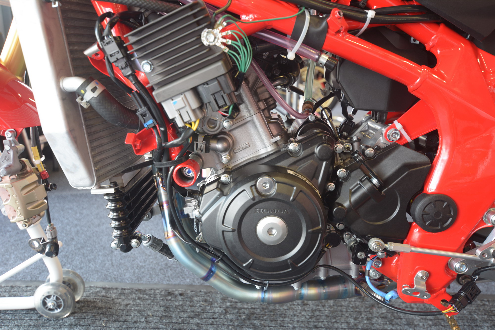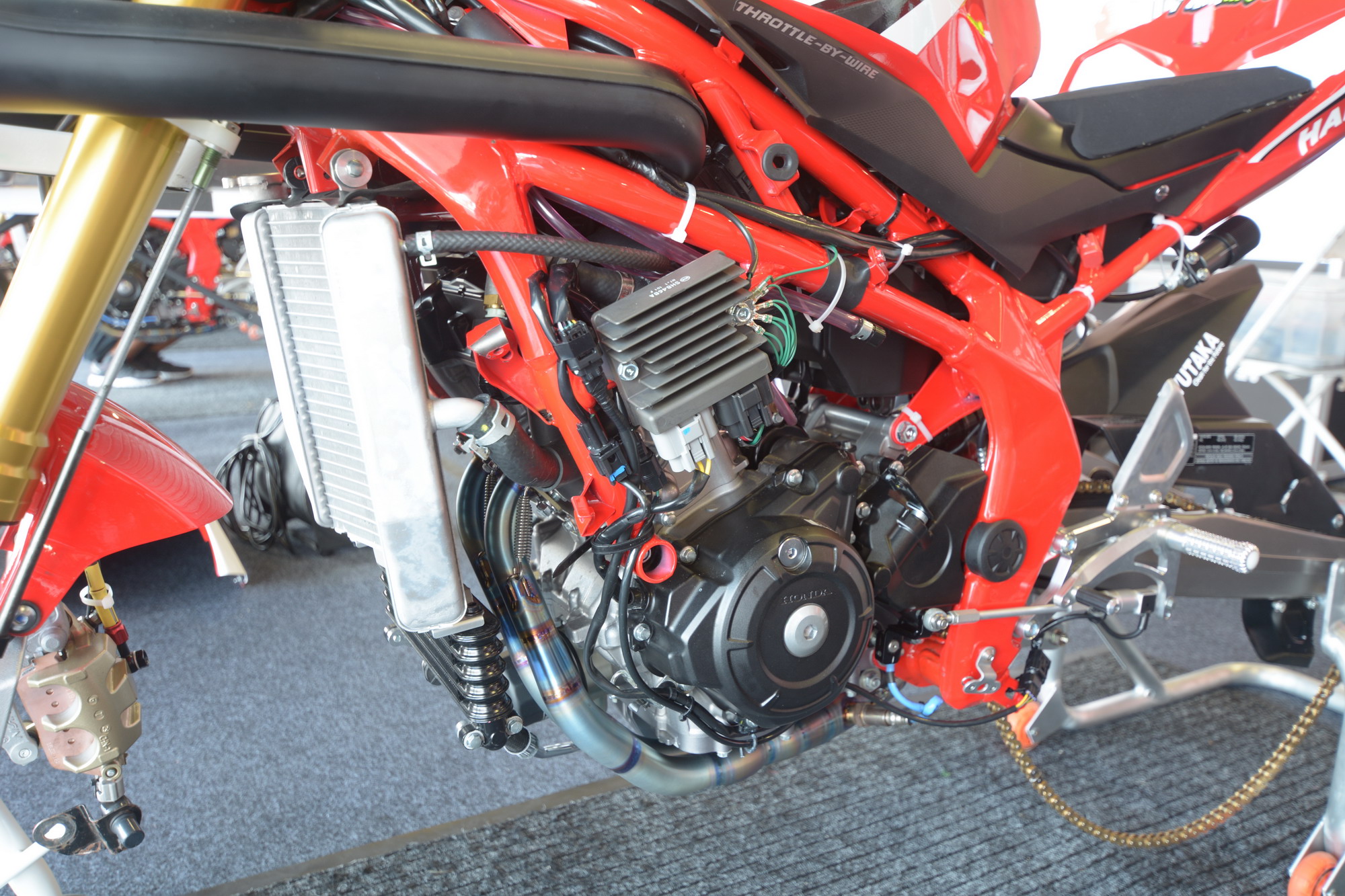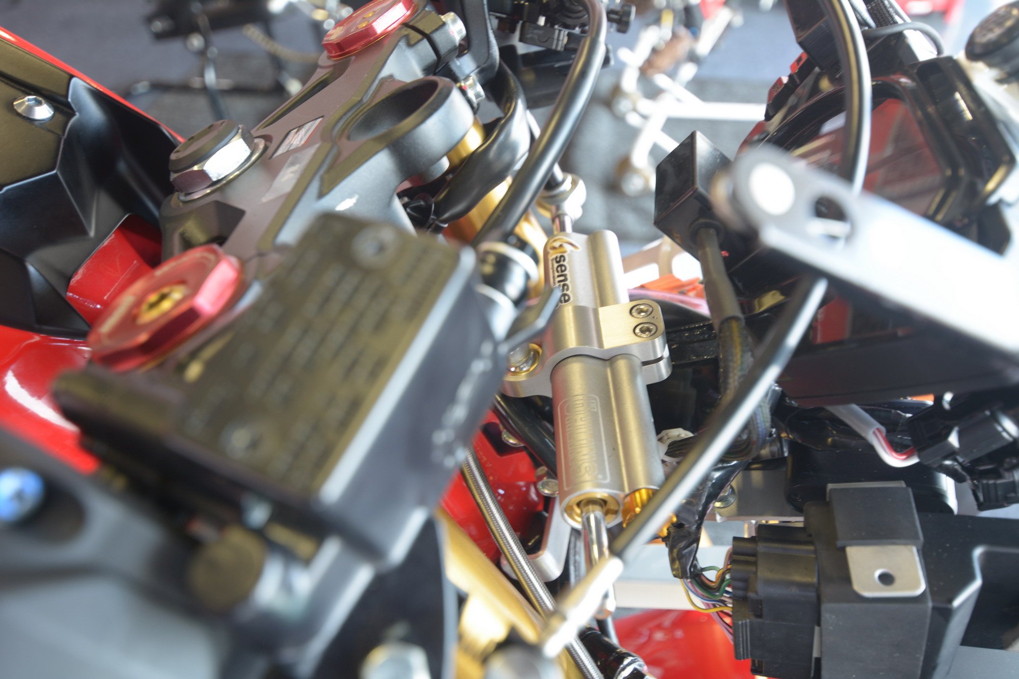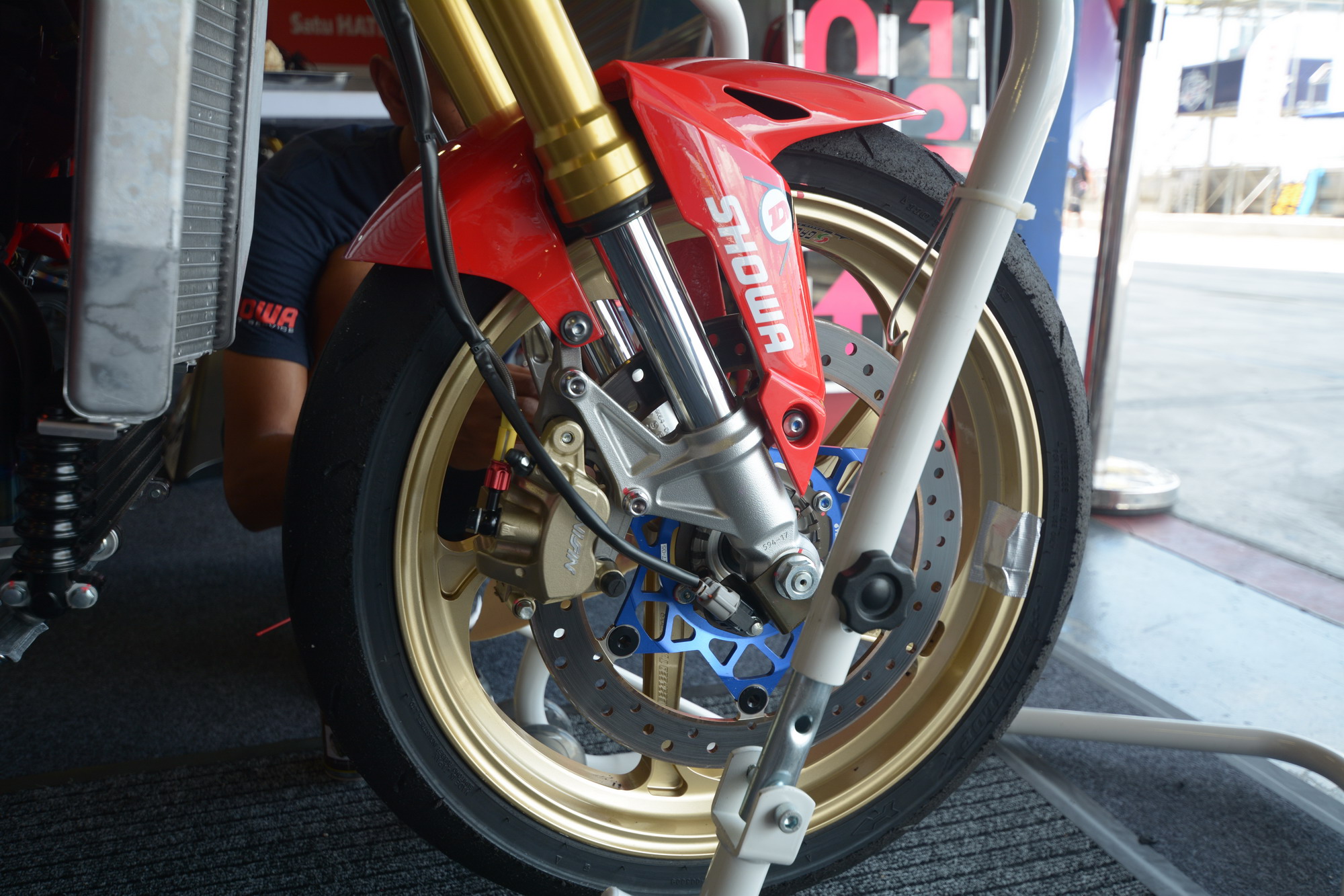 泰國站的比賽現(xiàn)場,我們?cè)诰S修站里看到了這臺(tái) CBR250RR 賽車,大部分都是原廠的組件,表面的改動(dòng)部分主要就是排汽系統(tǒng)、腳踏、懸掛內(nèi)部組件,至于最高境界的發(fā)動(dòng)機(jī)配汽系統(tǒng)(凸輪軸、汽閥、汽閥彈簧等)的研磨、微調(diào),則無法透過外部觀察而獲得答案。惟跑得很快的這樣一個(gè)成績,來顯示其強(qiáng)大的性能。