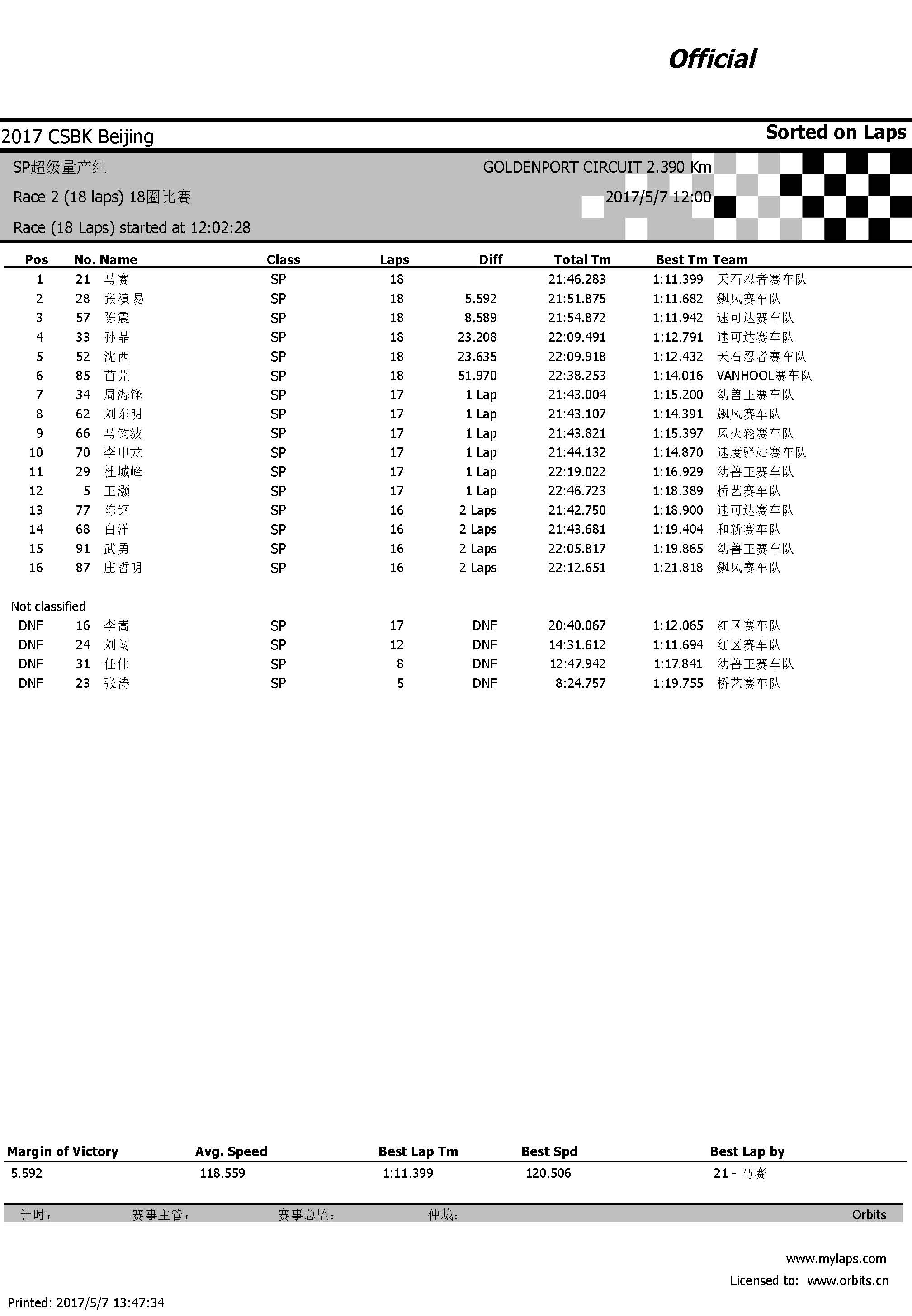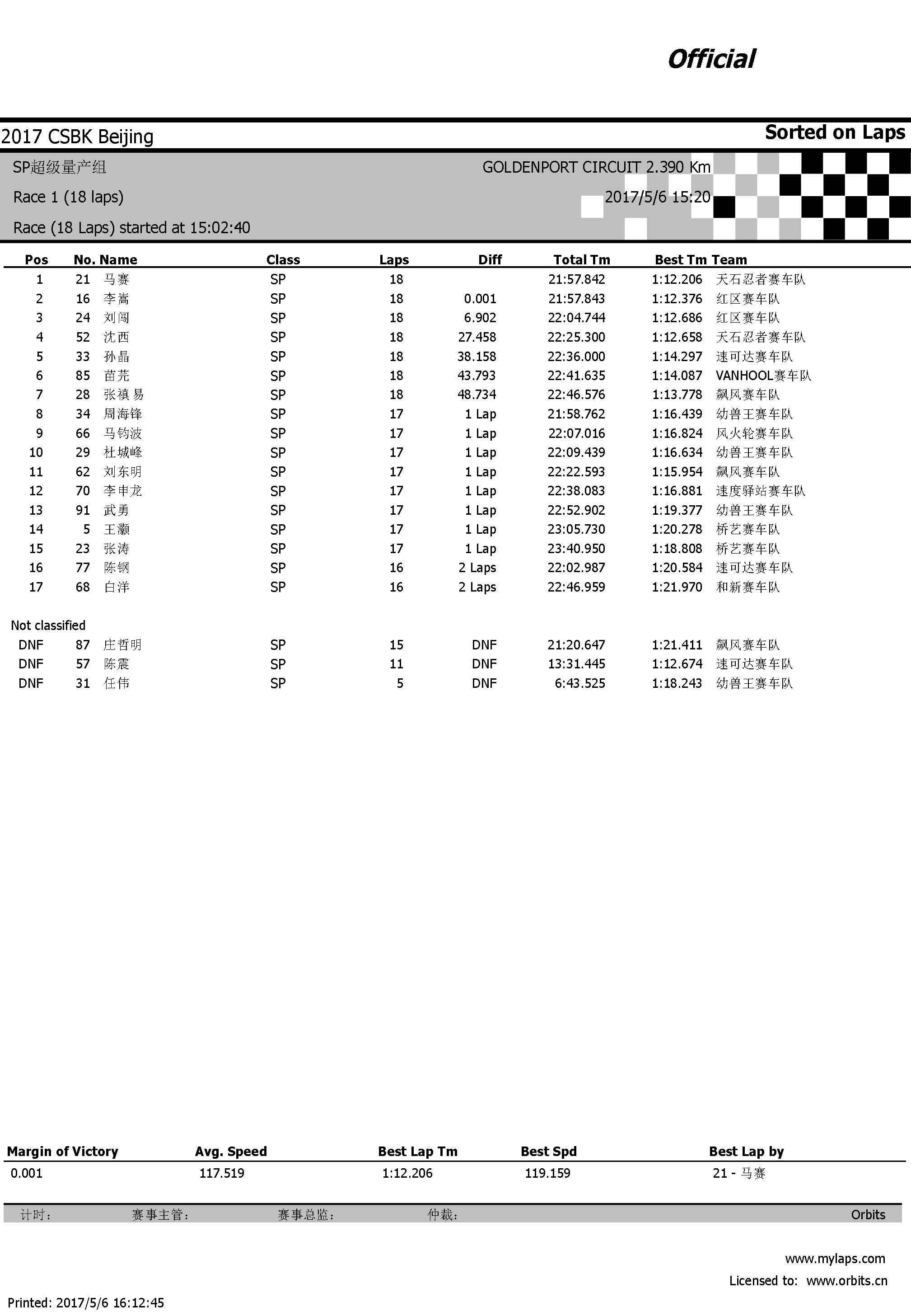 2017北京站SP超級(jí)量產(chǎn)組第二回合決賽 成績