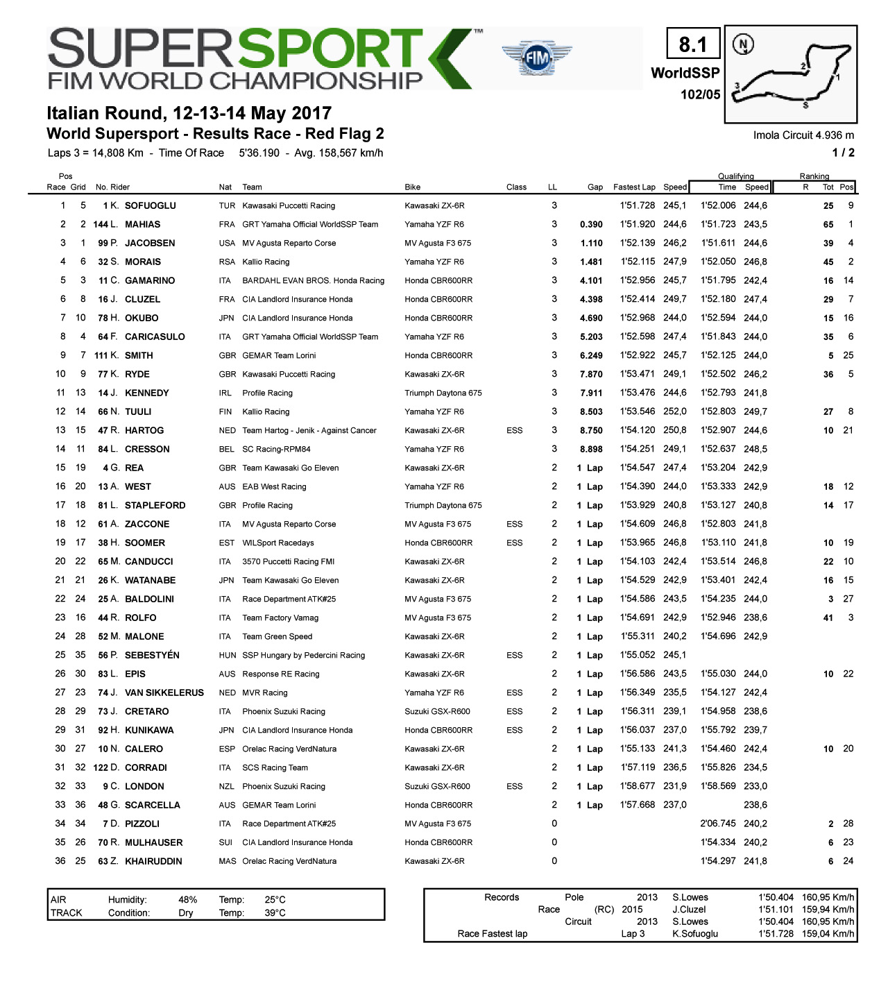 2017 WSBK意大利伊莫拉站——WSS 級別賽事