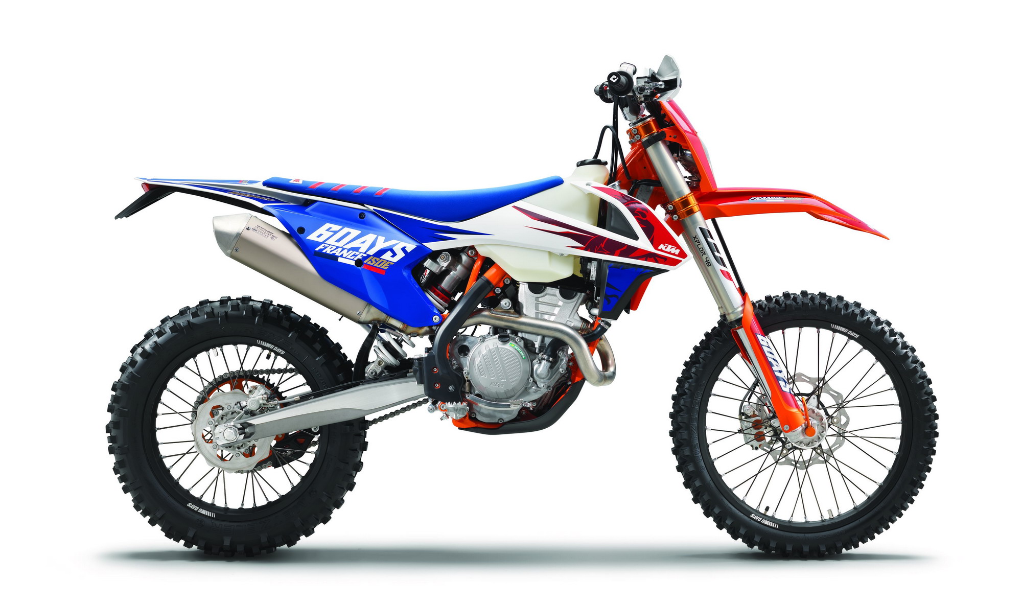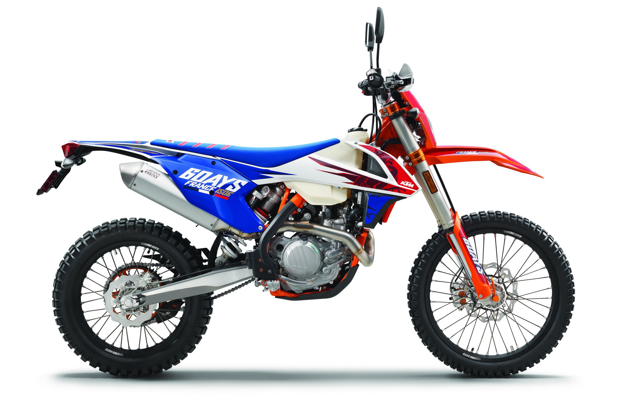 下圖:配備了后視鏡、彎燈的 2018' EXC-F 450 “ 六天 ” 美國(guó)特別版。