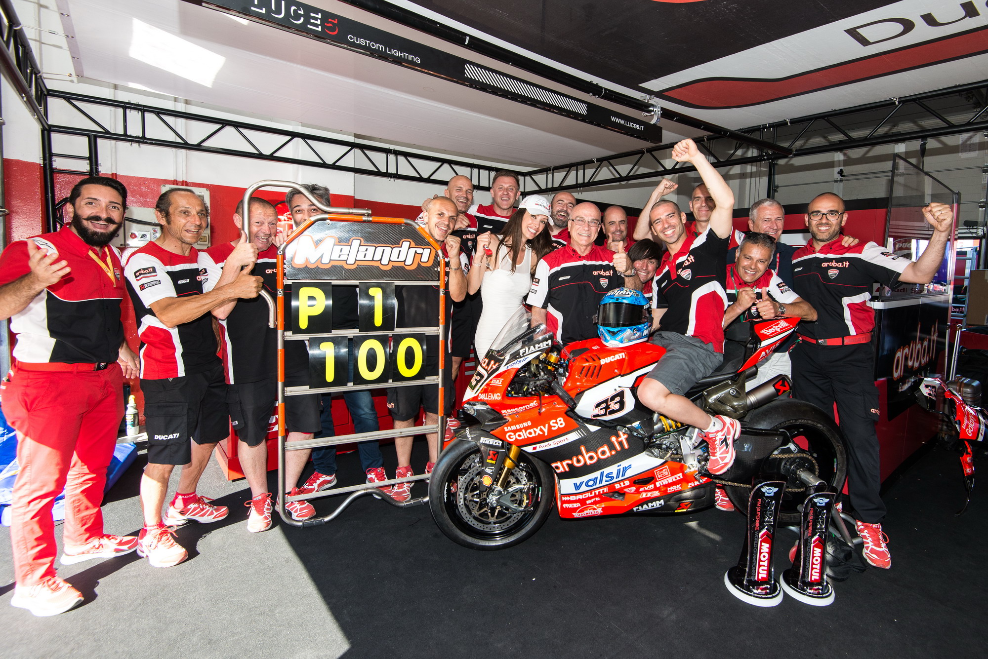 2017' WSBK 第七站的比賽,六月 18 號(hào)在意大利(圣馬利諾)的米沙諾賽車場(chǎng)舉行。在 WSBK 級(jí)別第二節(jié)比賽、隊(duì)友因傷缺陣后,駕駛 33 號(hào)賽車的意大利車手米蘭迪,在孤軍作戰(zhàn)之下奪得了這節(jié)比賽的勝利。