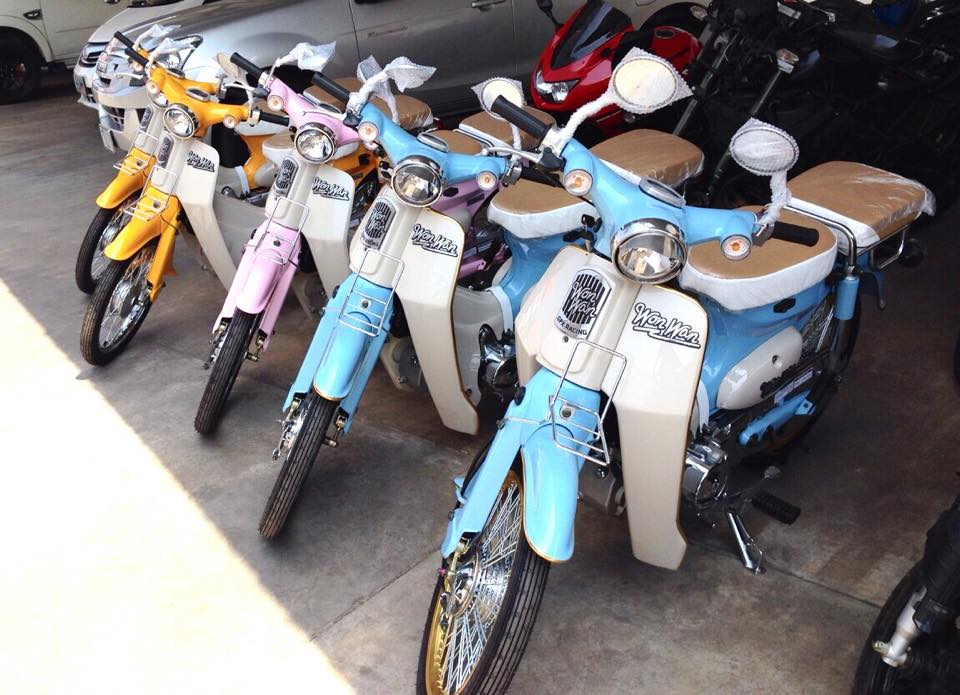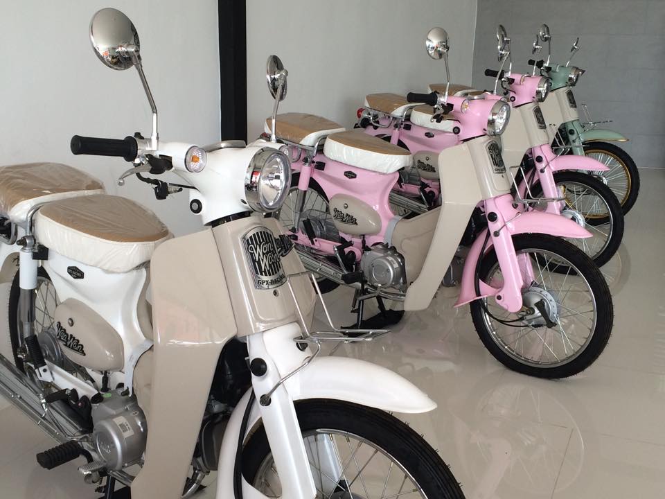 下面的圖片是國(guó)內(nèi)的代工廠向泰國(guó)輸出的,采用了 “ 奶油 ” 式柔和配色(粉紅、粉藍(lán)、粉綠)、名為 Won Won 的車型(至于這是什么款式,估計(jì)大家都懂的),品牌叫做 GPX Racing,這車在國(guó)內(nèi)能提供整車或者是全套散件的企業(yè)多不勝數(shù)、沒(méi)有一百都有幾十家,就看你選什么牌子的輪胎、化油器、懸掛,哪家工廠的發(fā)動(dòng)機(jī)、多大的排量。這款車在國(guó)內(nèi)市場(chǎng)很難看到,而根據(jù)配置的不同、這個(gè)款式的一般出口價(jià)格(FOB 離岸價(jià))在 $ 400 到 $ 500 美元之間。