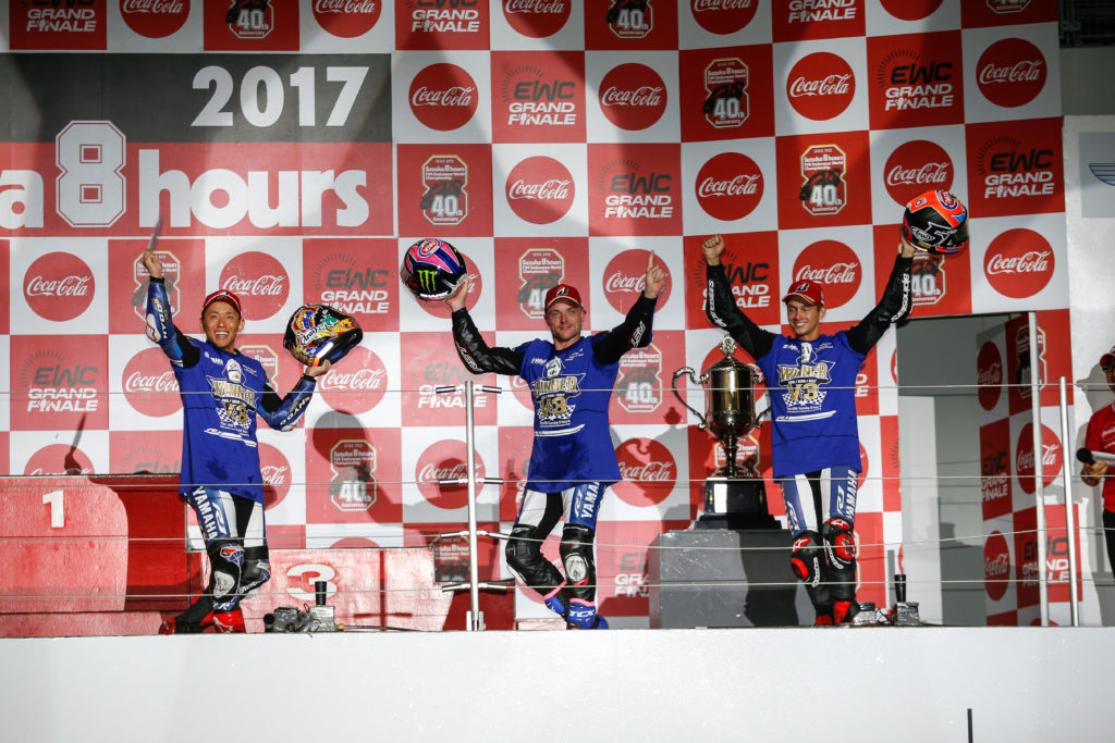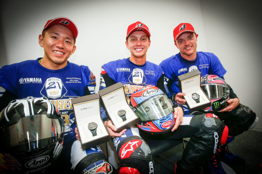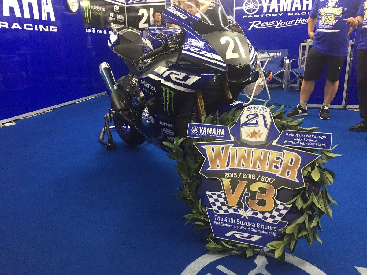 昨天(七月30號(hào))剛結(jié)束的世界耐力錦標(biāo)賽(EWC)日本站、 2017' 鈴鹿八小時(shí)耐力賽,雅馬哈工廠車隊(duì)的組合(21 號(hào)車)中須賀克行(日本)、Lowes(英國(guó))、V.D Mark(荷蘭)以 216 圈的成績(jī)奪得了冠軍,連續(xù)三年奪得了這項(xiàng)在當(dāng)?shù)鼐哂兄卮笠饬x之比賽的冠軍。