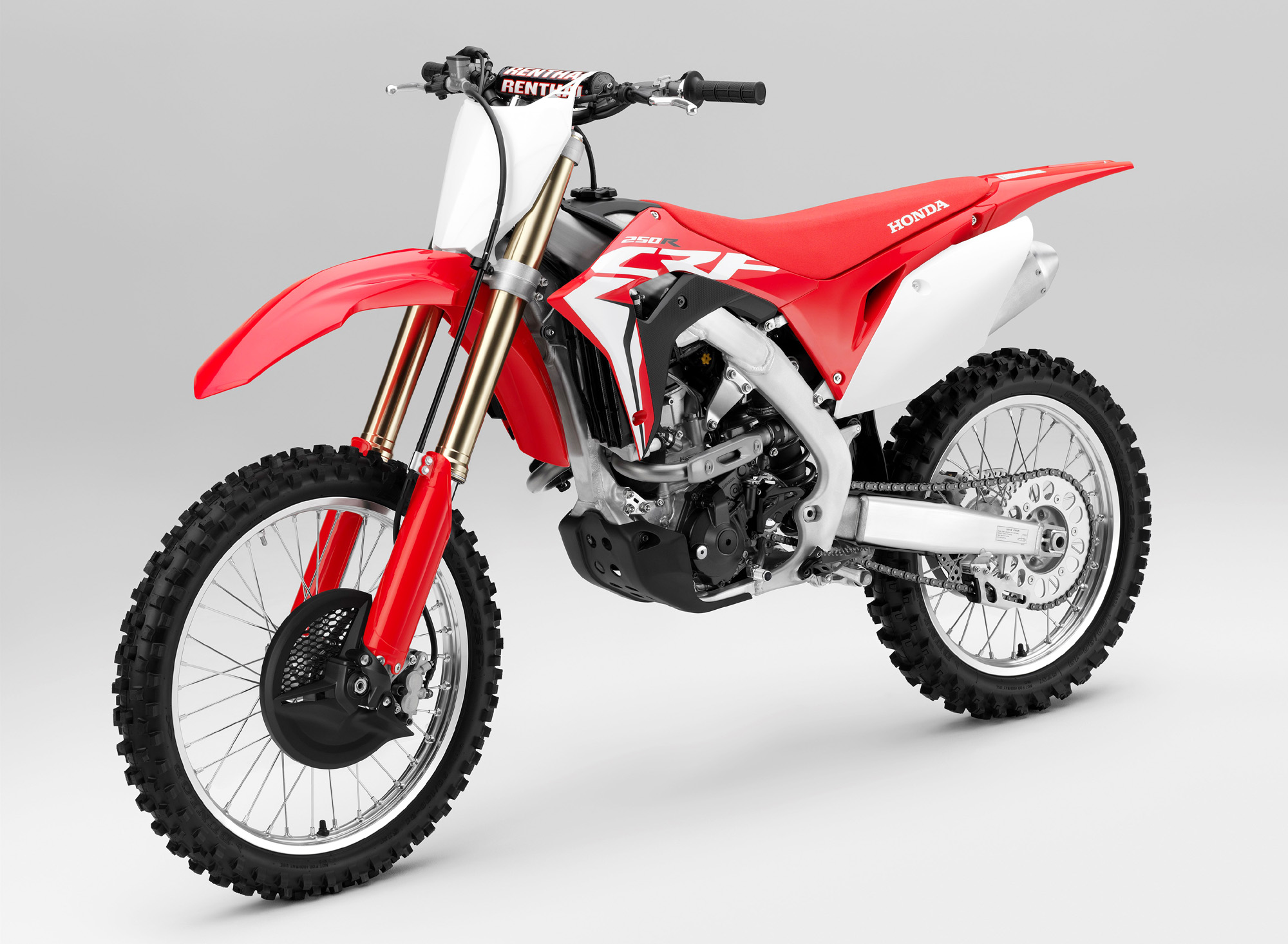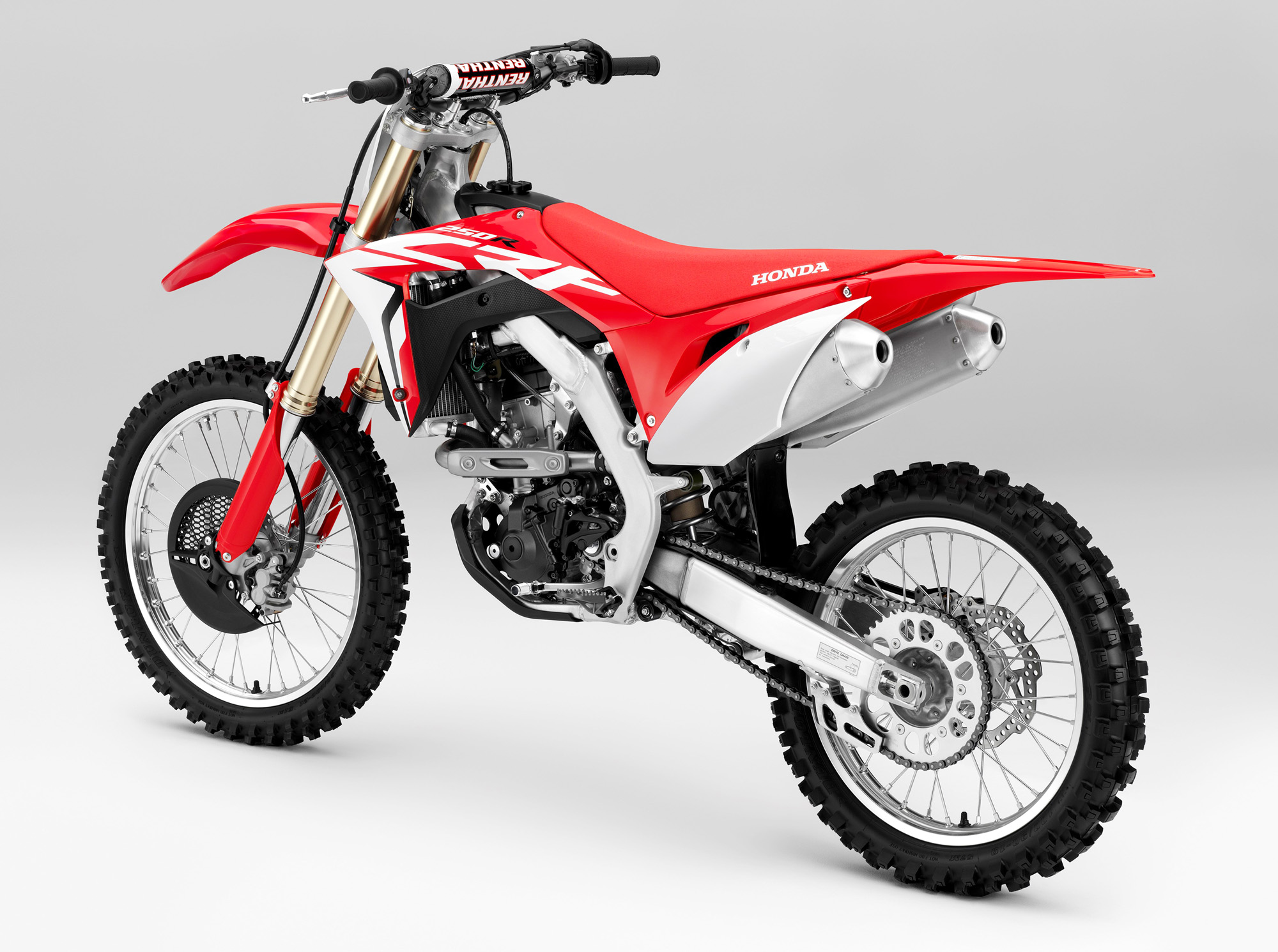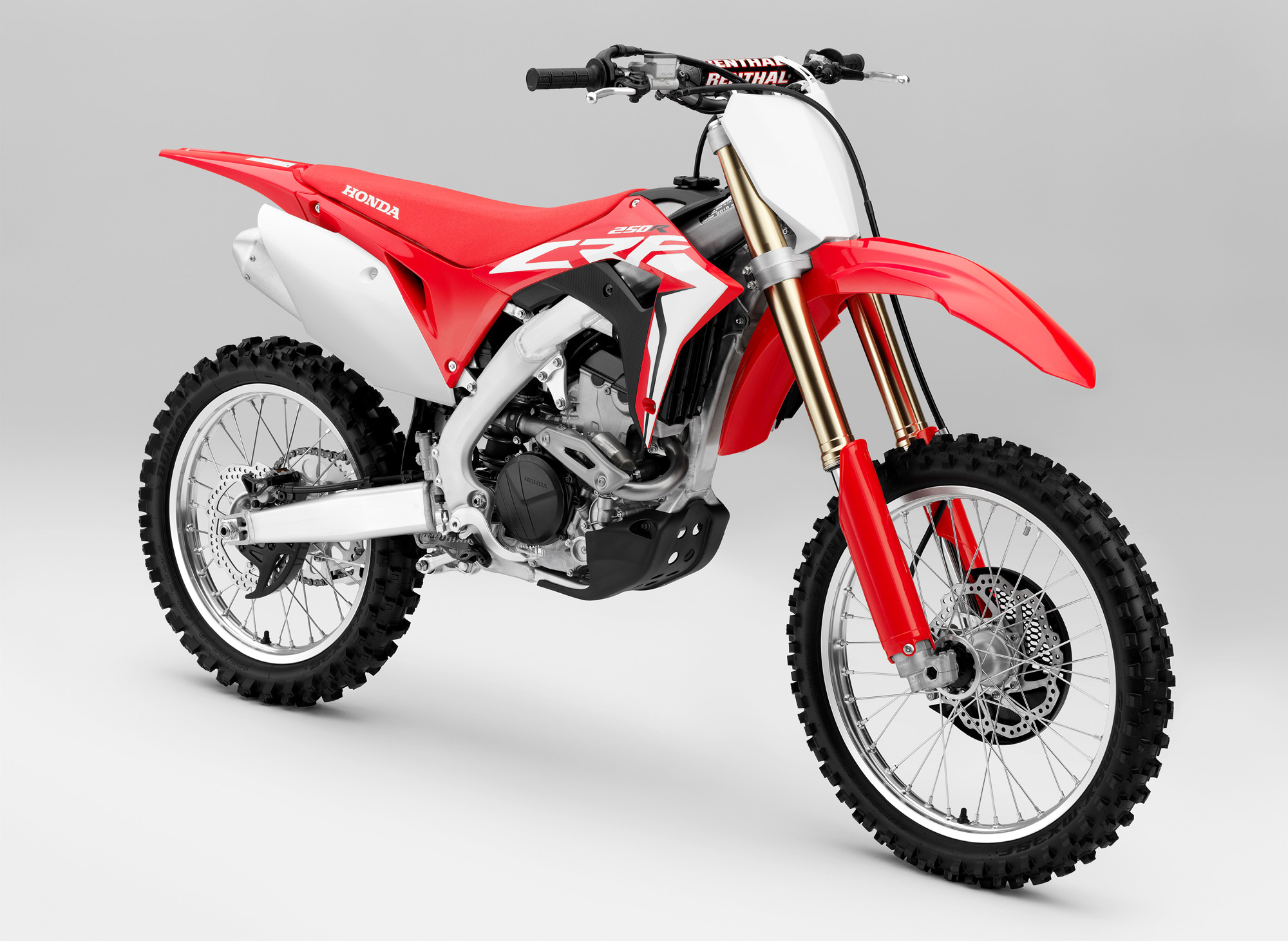 車身方面,采用一副鋁合金闊面車架,叉芯口徑達 49 mm 的昭和(Showa)倒立式前叉,鈦合金的油箱。整個底盤和懸掛系統(tǒng)的設(shè)置,與廠方之前發(fā)布的、MXGP 規(guī)格的 2018' CRF450R 相同。
