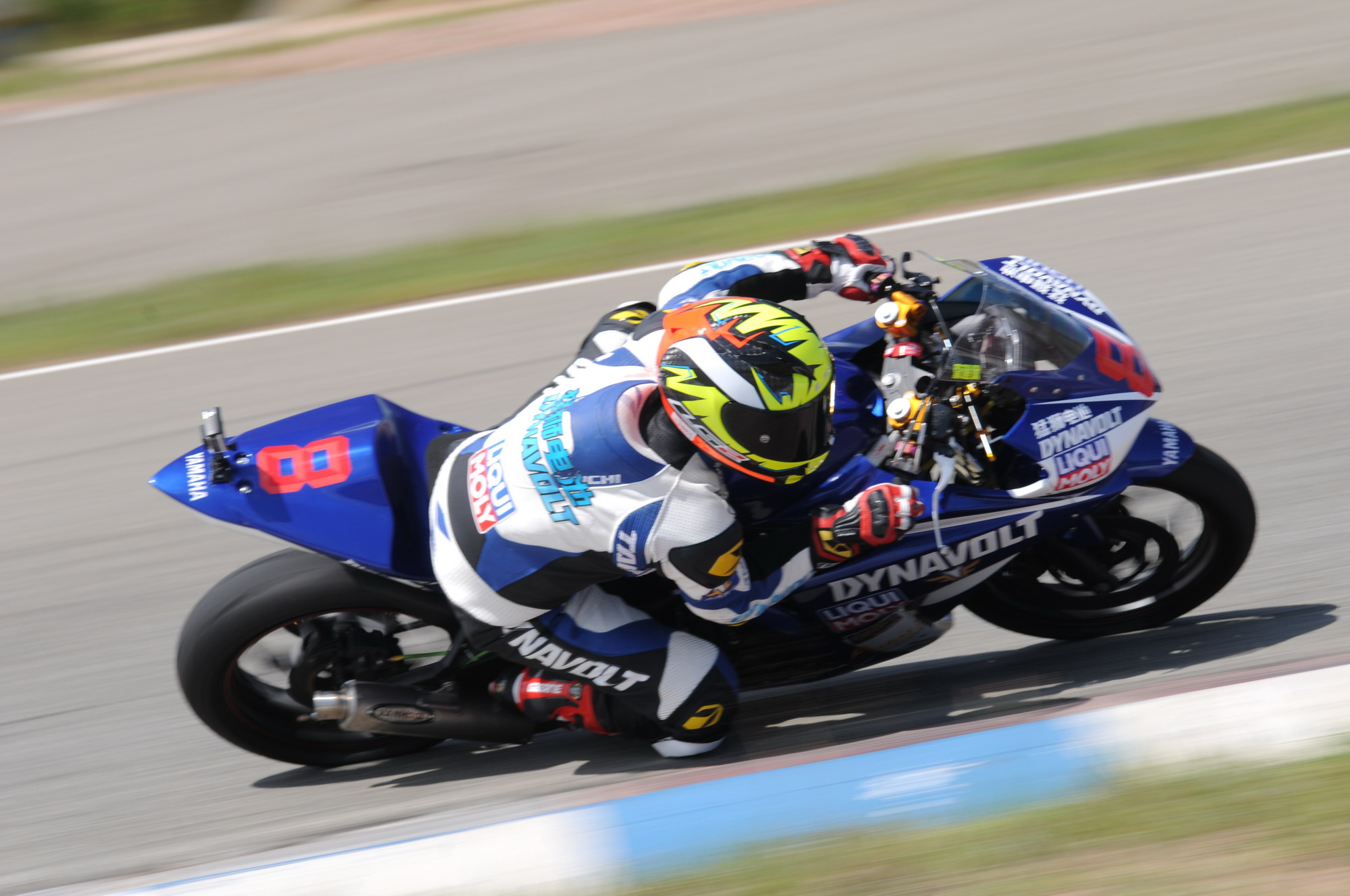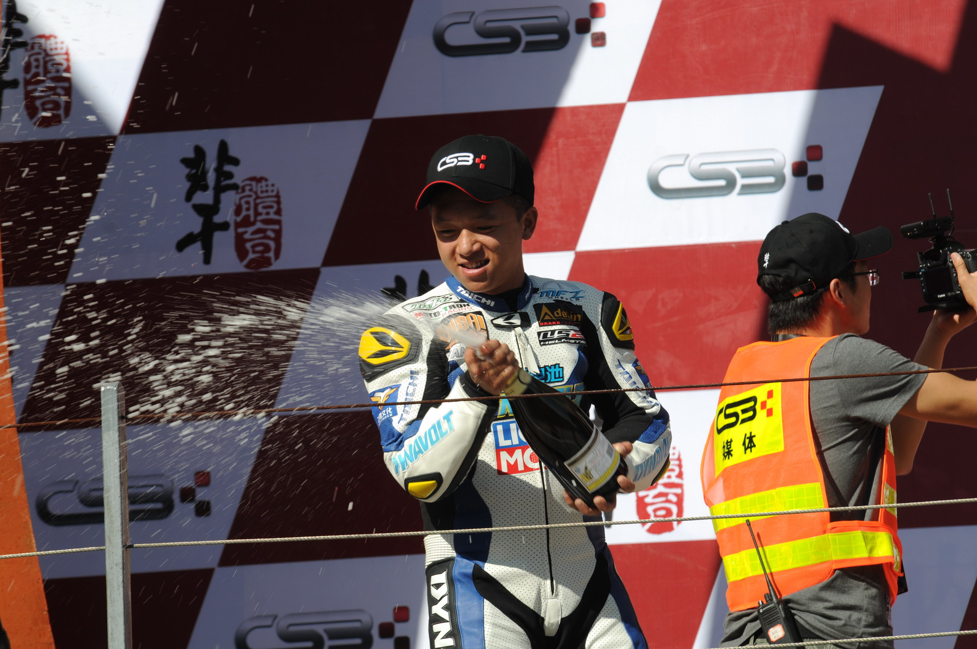 改裝 250 cc 公開組第一節(jié)的比賽,全場焦點(diǎn)是陳遠(yuǎn)航、蒙醒斌、周盛俊杰的三人之爭,七圈的比賽三人是從頭到尾一直纏斗在一起。最終周盛俊杰率先沖線、奪得了第一節(jié)比賽的冠軍,其隊(duì)友陳遠(yuǎn)航獲得了第二,蒙醒斌獲得了第三,沖線時(shí)三人的時(shí)間相差只有 0.263 秒。而蒙醒斌則跑出了這節(jié)比賽的全場最快圈速:2 分 02.754 秒。