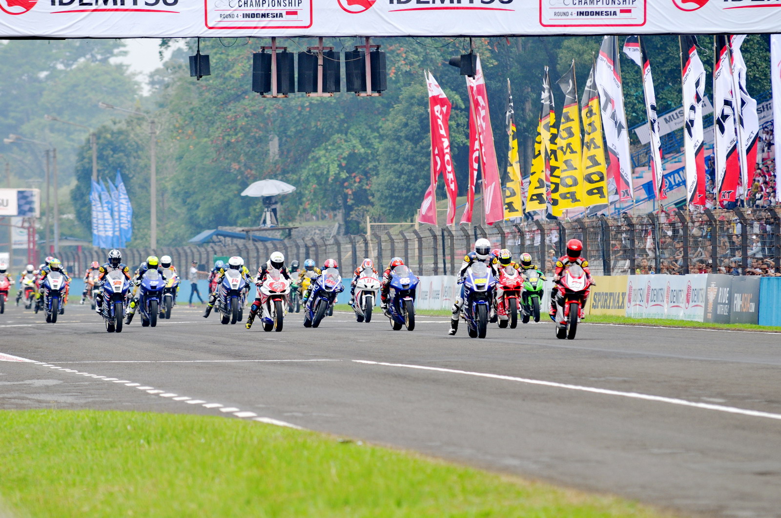 核心提示:AP 250 級別共 12 圈的比賽。主場出戰(zhàn)的 Astra Honda 工廠車隊可謂氣勢凌厲,一起步、大熱門的 31 號車、印尼車手 G. Salim(Hon