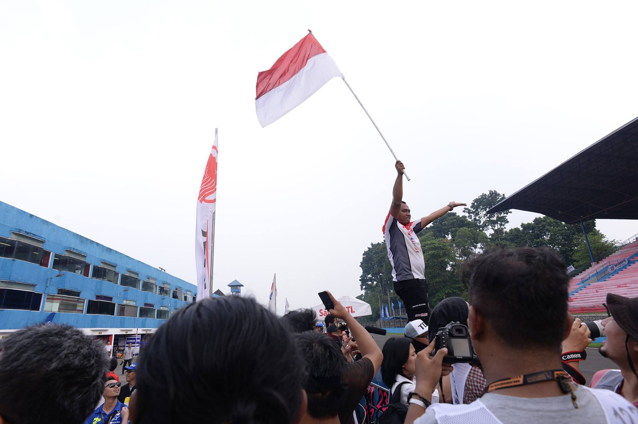 nda 工廠車隊奪得。印尼車手壟斷了這一節(jié)比賽的頒獎臺,讓場內(nèi)、場外到處洋溢著一片的歡呼聲。