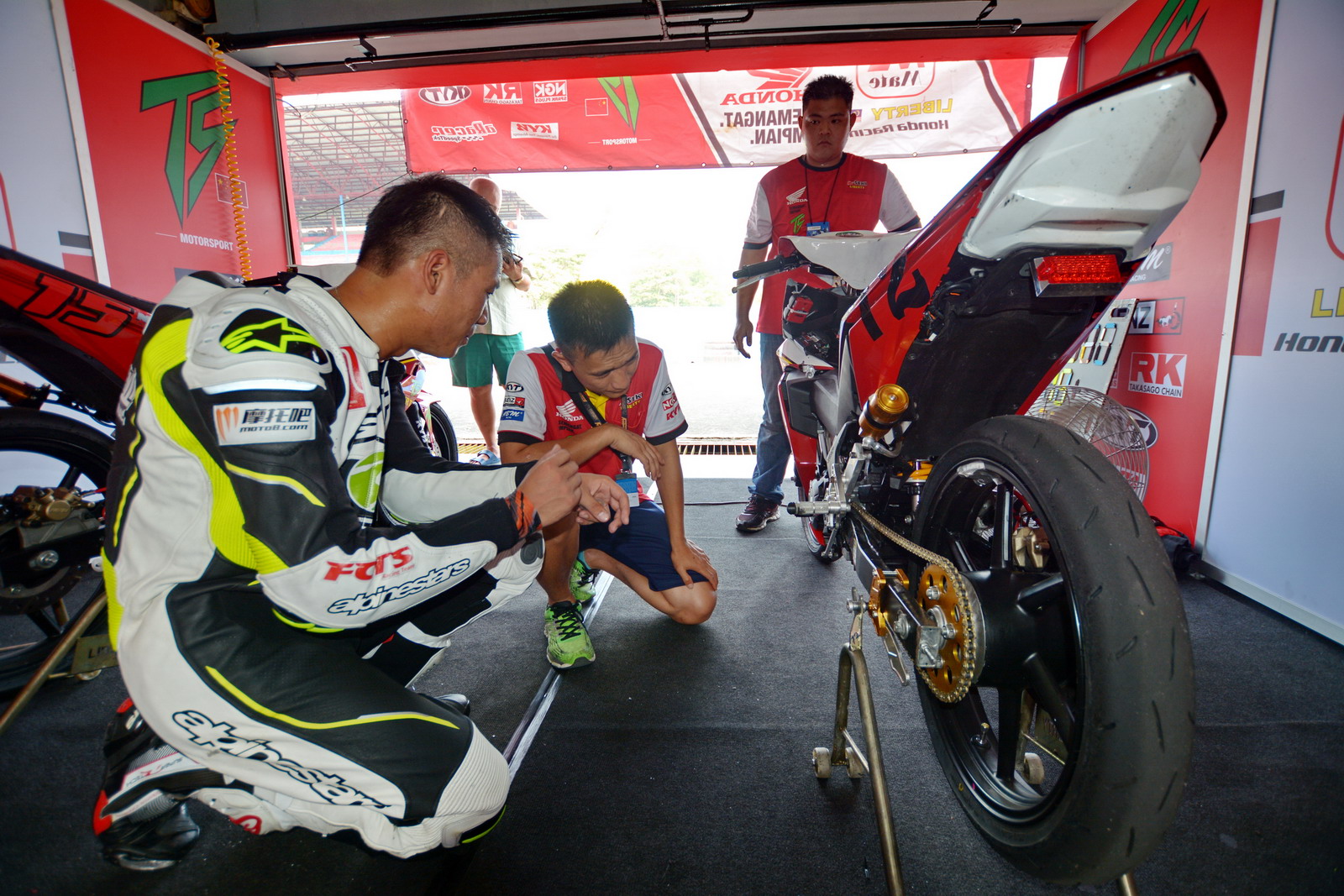 早上的時(shí)候,UB150 級(jí)別還有一節(jié)30分鐘的賽道熱身,袁際博利用這機(jī)會(huì)去學(xué)習(xí)東南亞選手對(duì)于彎梁比賽的節(jié)奏,最后他跑出了 1:56.809 秒的最快圈速,成功超越5位東南亞選手。這單圈成績(jī)大大鼓舞了他對(duì)下午正賽的信心。與之前的泰國(guó)站和日本站相比,這一站的賽車(chē)狀態(tài)似乎已經(jīng)在逐步地改善中,再加上經(jīng)驗(yàn)的累積,因而印尼站的這兩天來(lái),圈速都在不斷地進(jìn)步中。