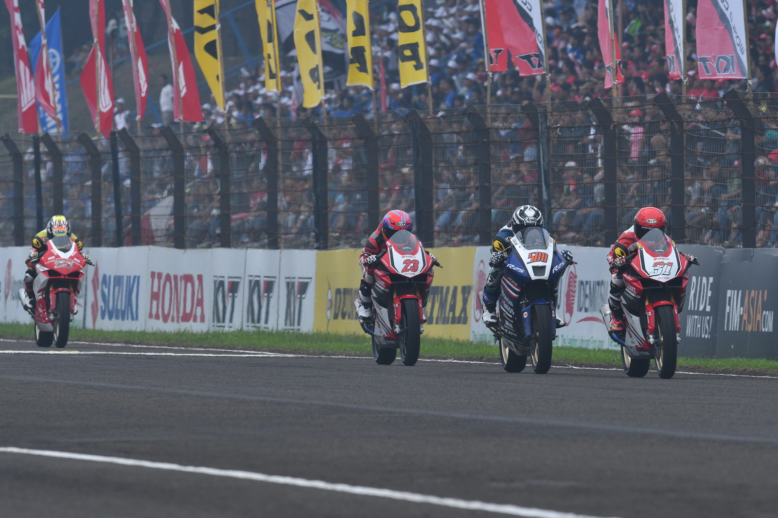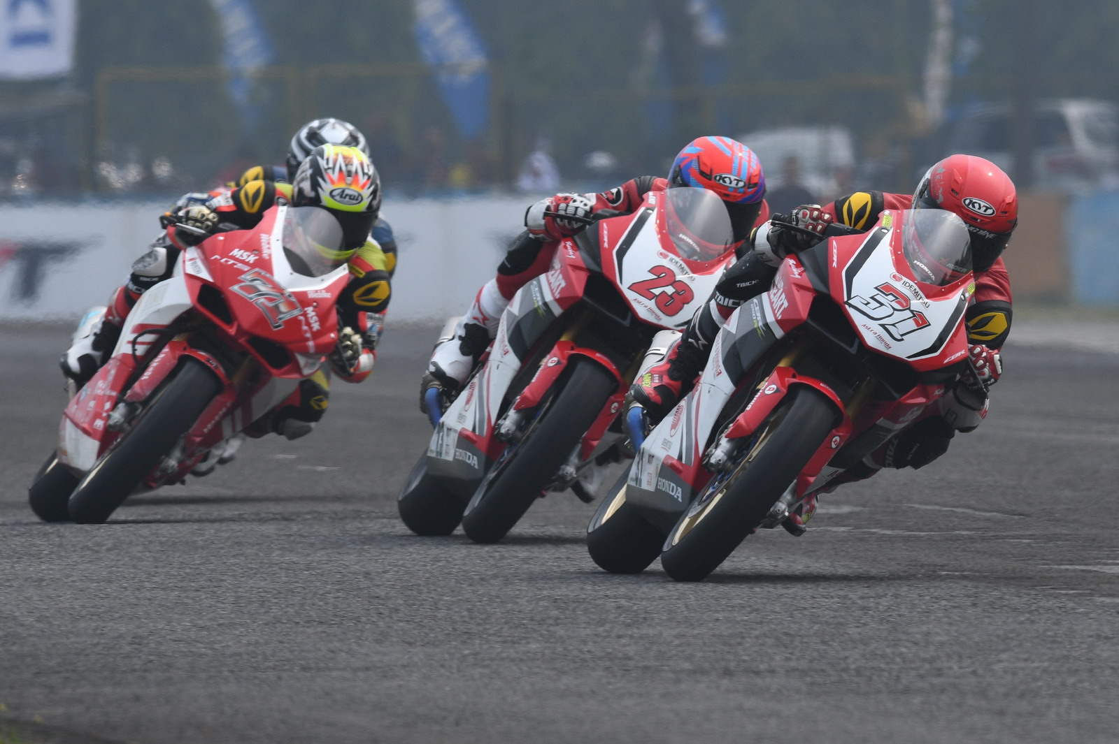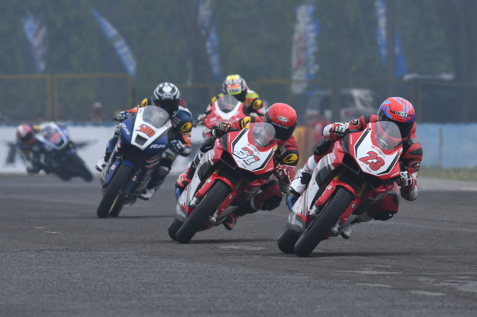 2017 ARRC 印尼站,AP 250 級別第二節(jié)的比賽,依然是印尼 Astra Honda 工廠車隊統(tǒng)治下的世界,能對 Honda CBR 軍團構(gòu)成沖擊的僅剩泰國 Yamaha 工廠車隊的 500 號車、泰國車手 A. Sarmoon。