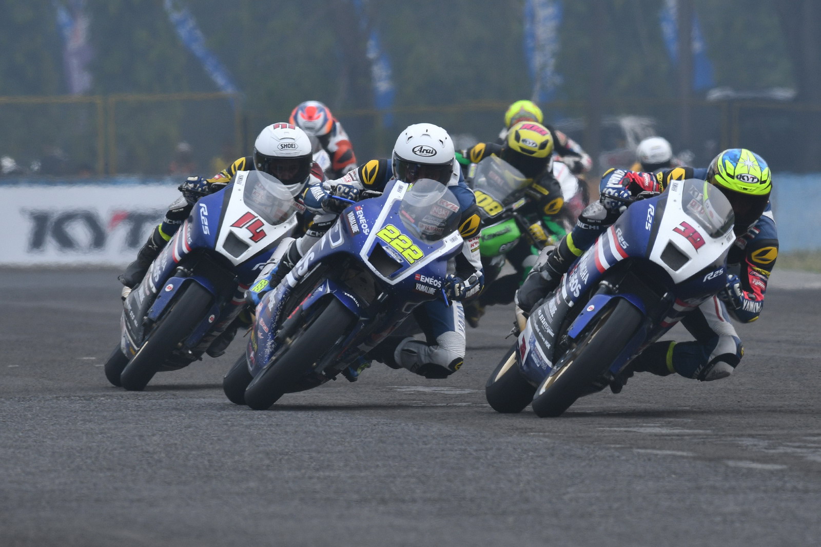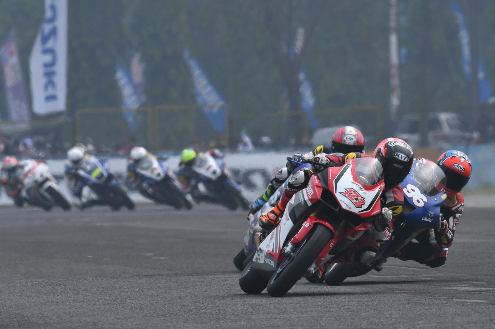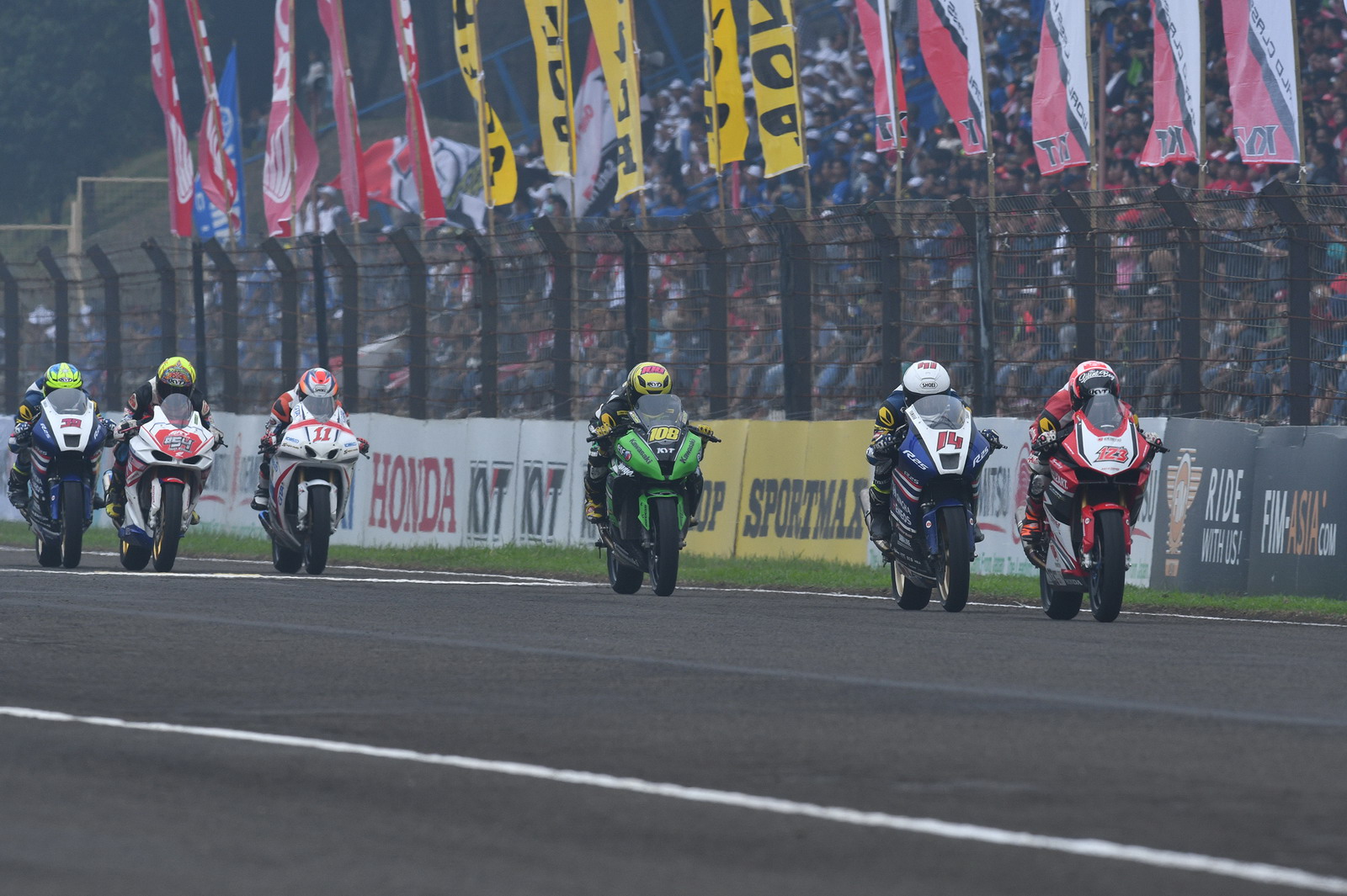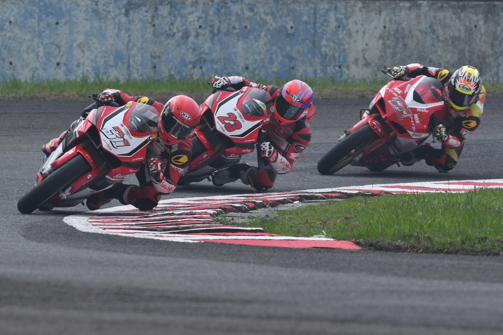 2017 ARRC 印尼站,AP 250 級別第二節(jié)的比賽,依然是印尼 Astra Honda 工廠車隊統(tǒng)治下的世界,能對 Honda CBR 軍團構(gòu)成沖擊的僅剩泰國 Yamaha 工廠車隊的 500 號車、泰國車手 A. Sarmoon。