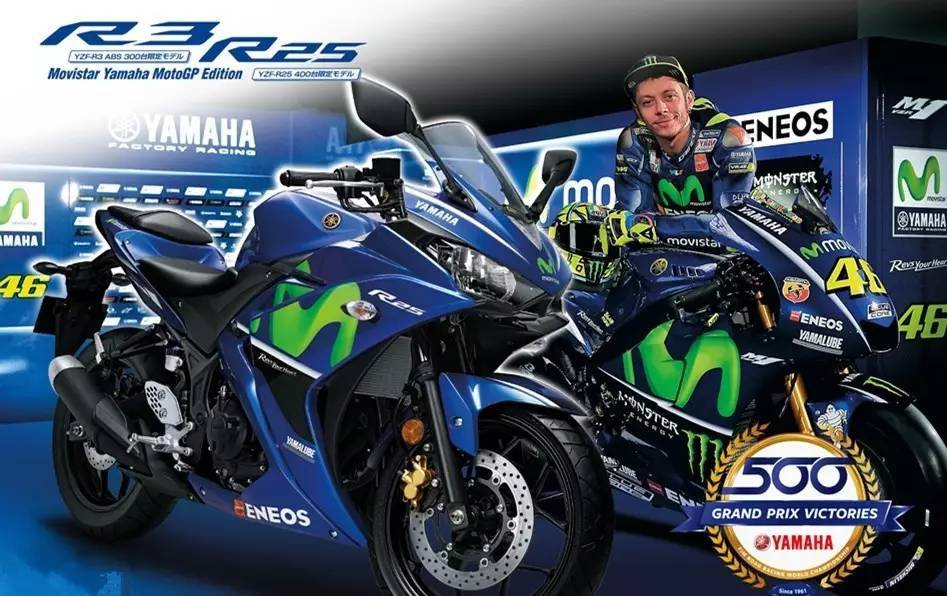 核心提示:2017 YAMAHA YZF-R25/R3 Motogp貼花限量版,宣傳海報以羅西及YAMAHA M1戰(zhàn)車襯托。入門車已成為YAMAHA銷售的增長動力,當中采用雙