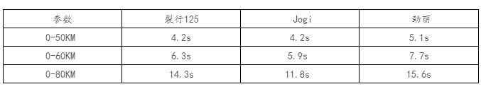 分析下這個數(shù)據(jù),裂行125 車重110kg, Jogi為90kg,兩車差20kg,0-50km之前,裂行125與巧格I齊平,到了60km也只相差0.4s,如果說這顆發(fā)動機換到小羊身上,裂行125前段一定是甩巧格的。巧格I是目前125cc級別小綿羊的一線車款,換句話說裂行125的60km前段的加速已經(jīng)是125cc級別“中羊”的一線水準,但是尾端差強人意,80km之前還不夸張,80km到90km這段加速拖尾速很嚴重。而且這顆液晶表的誤差有10%,表頭102km,D-BOX顯示數(shù)據(jù)為90km。