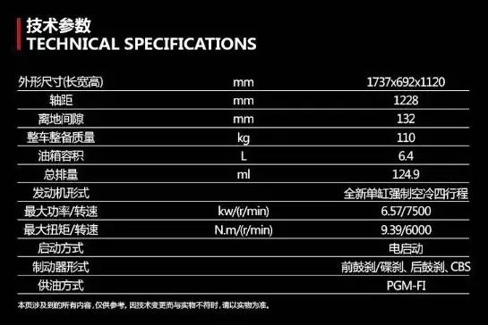 2、本田的PGM-Fi電噴一直是領(lǐng)先科技,而裂行125車身采用的是最新的第五代PGI-FI電噴系統(tǒng)。第五代的更新在三個點身上:油耗、排放、和降低噪音。