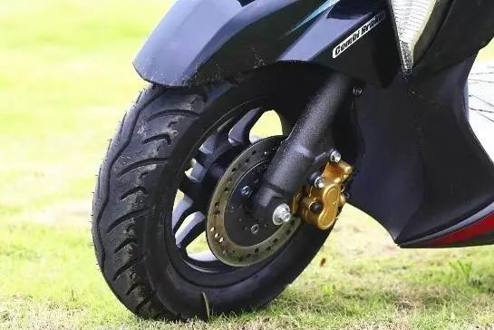 與Mojet 90/90-12寸的輪轂相比,裂行125前輪采用100/90-10規(guī)格,190mm碟剎搭配單向雙活塞卡鉗。