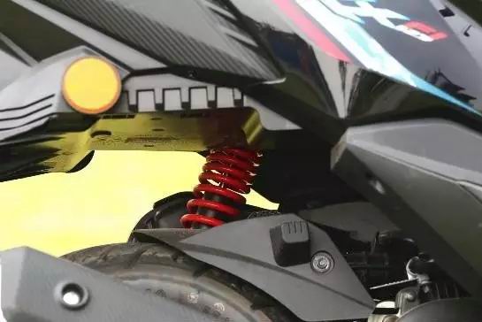 還有個值得點贊的地方,就是車身在細節(jié)上面的注重和掌控。貼花和碳纖維皮紋的結(jié)合也有效提升了這臺125cc踏板的品質(zhì)感,也可以看出廠家對這臺萬元級踏板的外形細節(jié)做工設計上花費了不少心思。