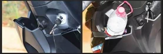 前置物空間采用雙邊儲物格,空間:優(yōu)!同級別踏板大部分都是500ml飲料瓶滿載,裂行125FI 1.5L農(nóng)夫三拳,還有空隙可以塞入。