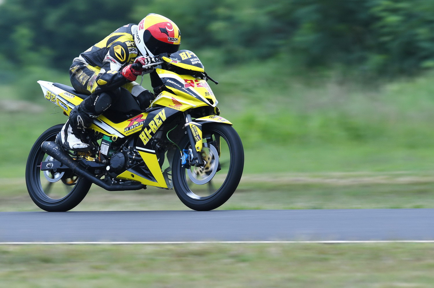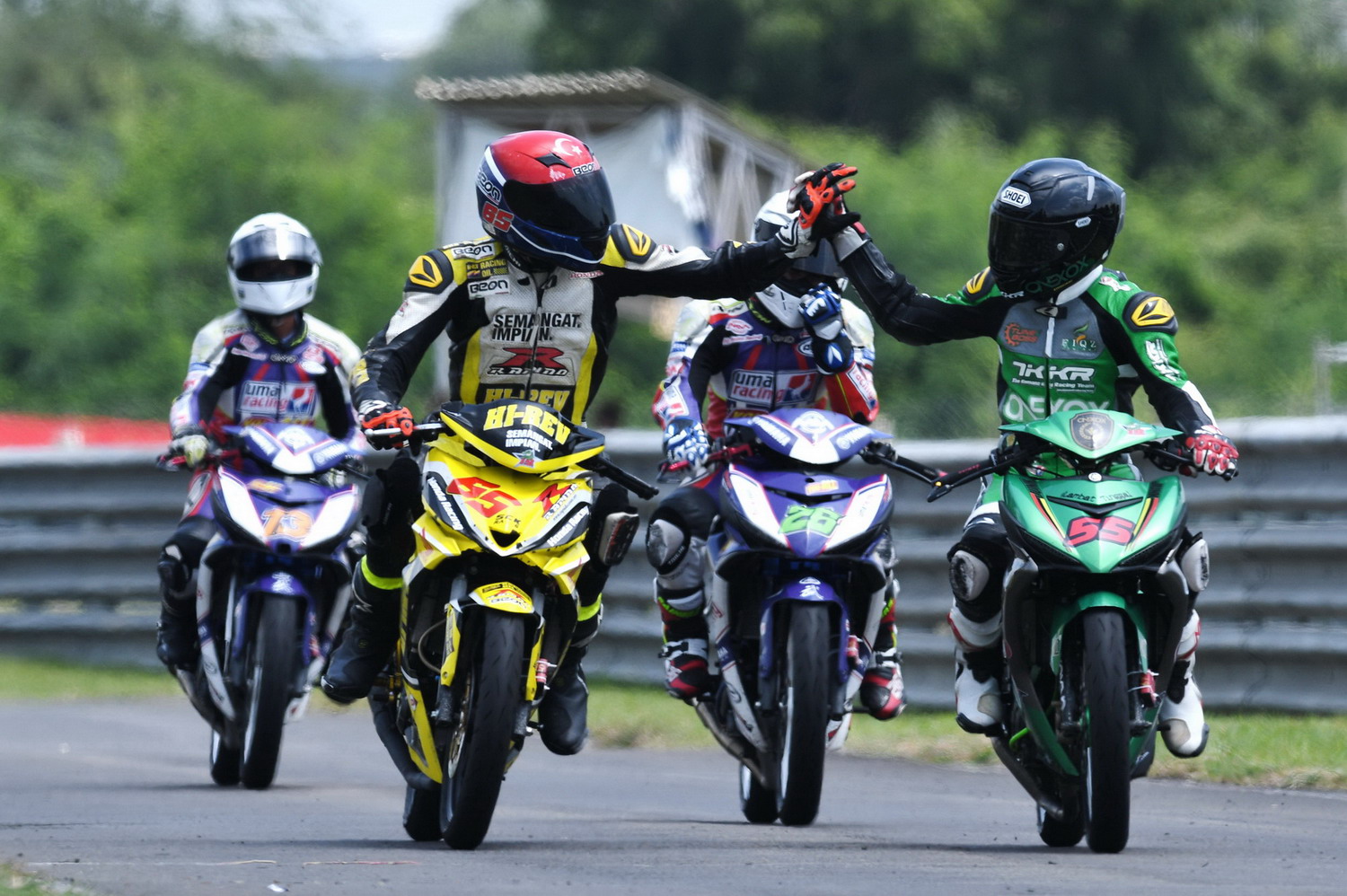 最終,駕駛 65 號賽車(Honda)的馬來西亞車手 F.S Rostam 以 0.178 秒的優(yōu)勢奪得了冠軍,這是他在今年賽季里的第三次冠軍。前五名沖線的車手,第一到第五名的時間相差不到 0.8 秒,另外的兩位馬來西亞車手 Md Haziq Md Fairues(Yamaha)、A.H.Anuar(Honda) 分別獲得了第二、第三。經(jīng)過了季初到現(xiàn)在的調(diào)整,Honda 的賽車似乎開始發(fā)力,Yamaha 在此級別的優(yōu)勢正被一點一點地追趕著。