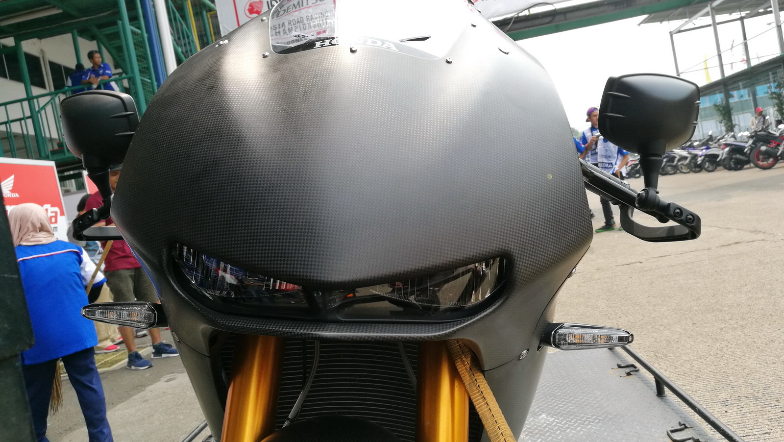 核心提示:2017' 亞洲錦標(biāo)賽印尼站、場(chǎng)外的小展覽,Honda 展示他們?cè)诋?dāng)?shù)厣a(chǎn)的最新跑車 CBR250RR。現(xiàn)場(chǎng)看到的 CBR250RR,造型上的感覺比起