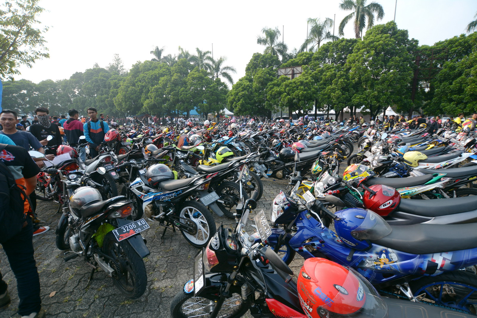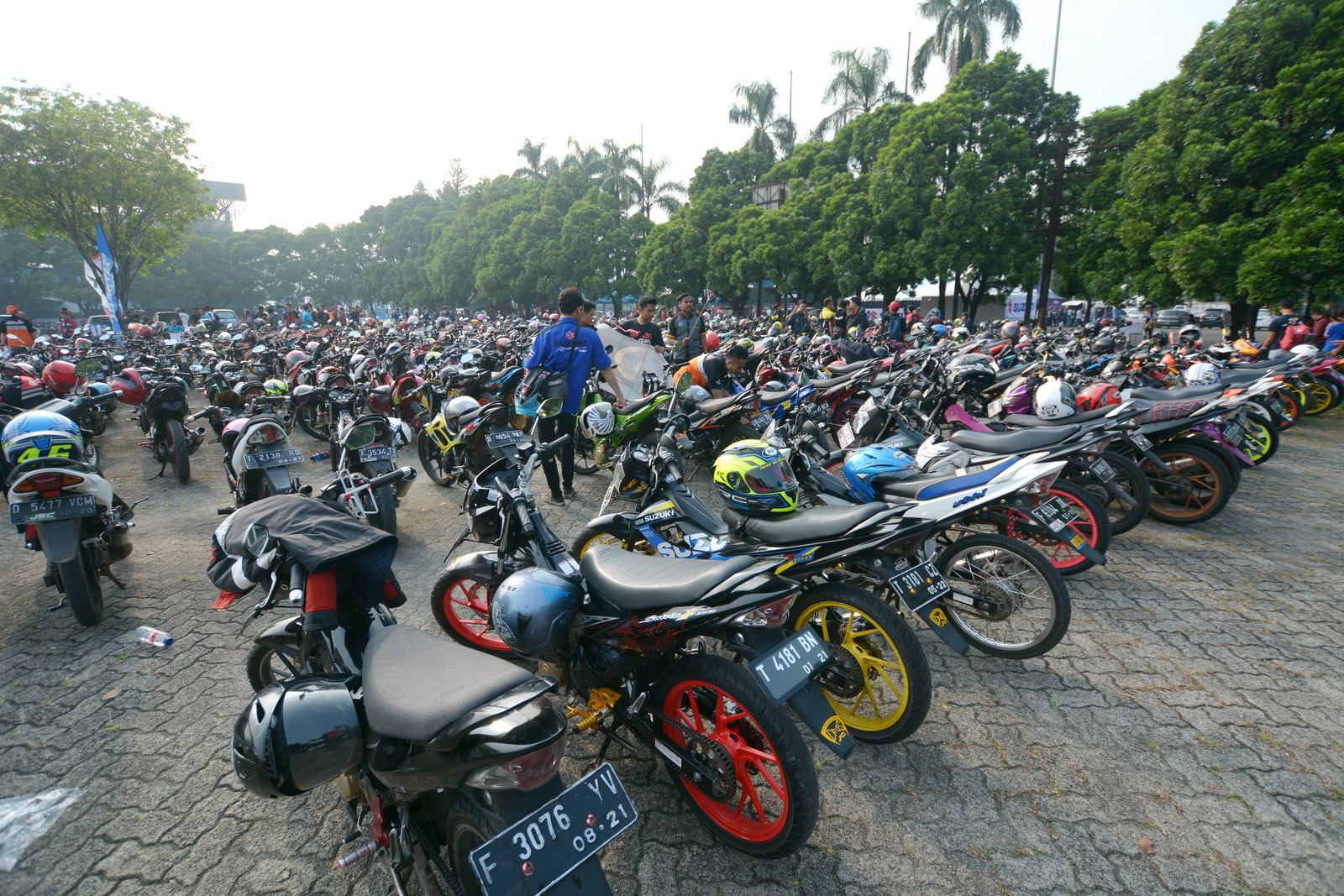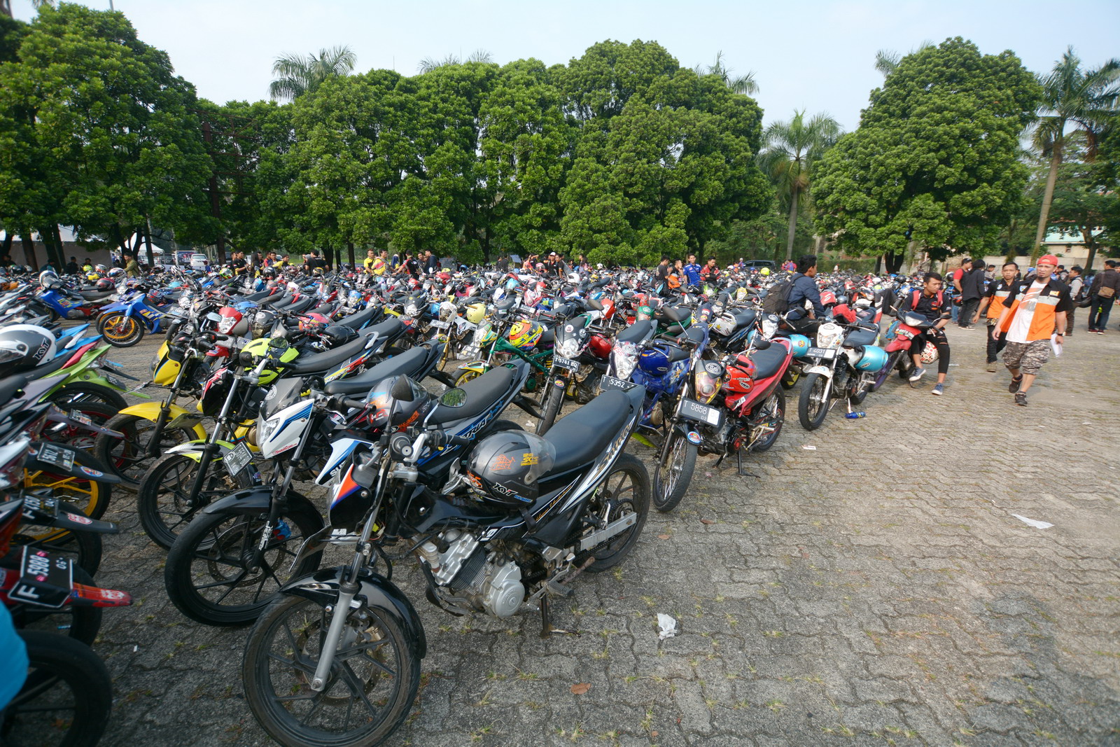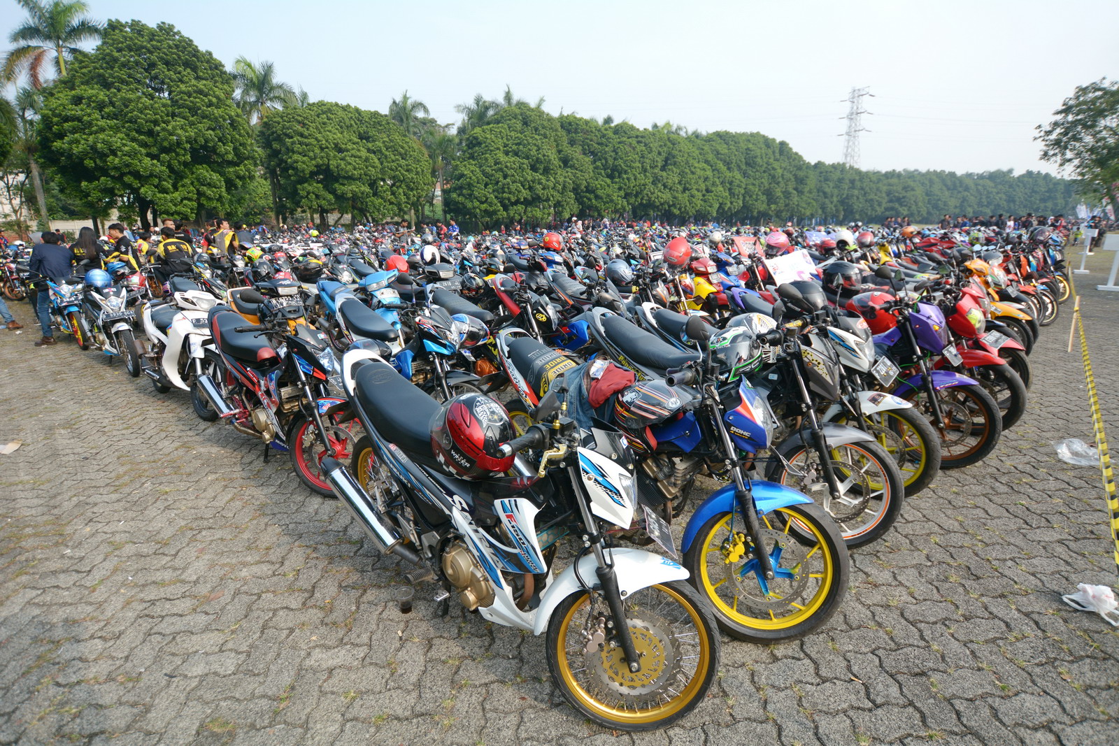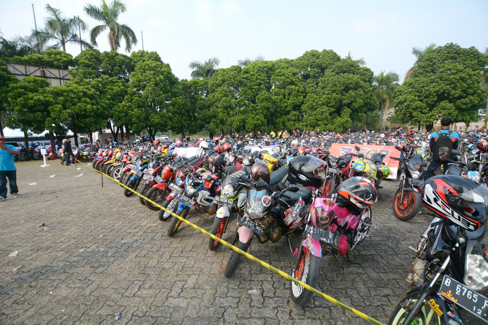 亞洲公路錦標(biāo)賽印尼站,各地的愛好者騎著自己的車,奔赴雅加達(dá)附近的仙圖賽車場。賽車場的外圍,賽會早就做好了準(zhǔn)備,把停車場劃好了區(qū)域,以迎接來自各地的俱樂部、愛好者,好讓他們對號入座。